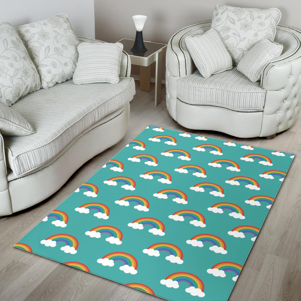 Rainbow pattern green background Area Rug is a uniqued design and limited item. It made to order, hand printed, and sewn with love in our factory.