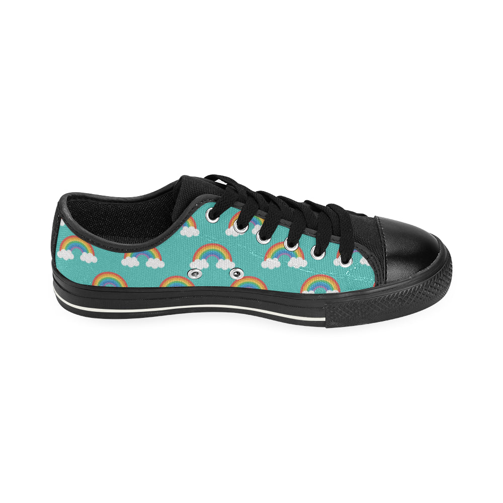 Rainbow pattern green background Men's Low Top Canvas Shoes Black