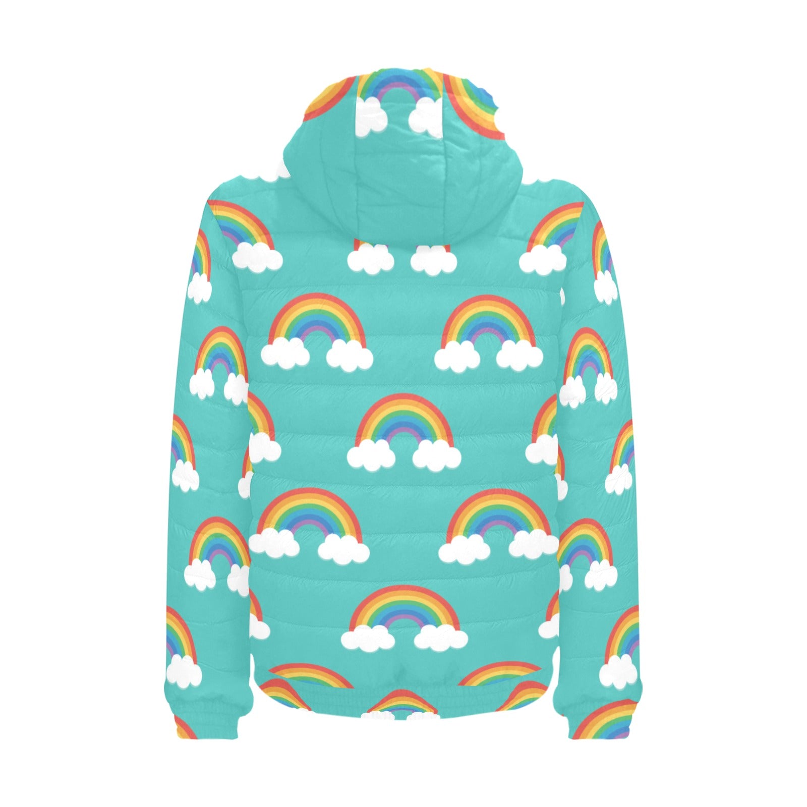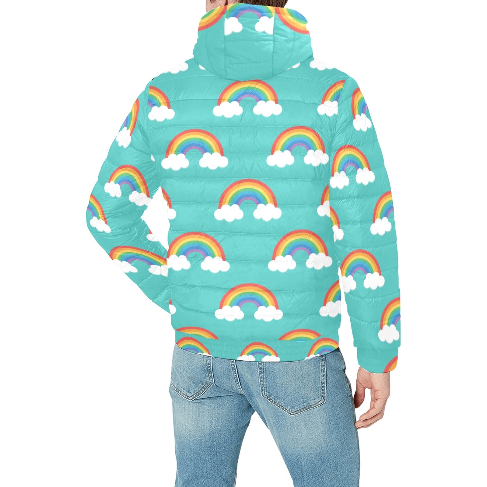 Rainbow pattern green background Men's Padded Hooded Jacket