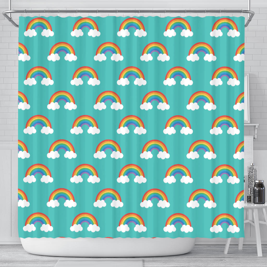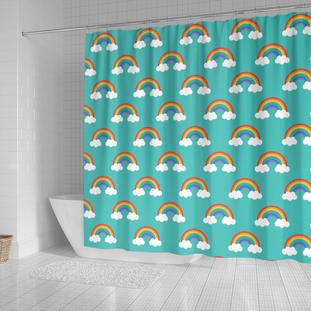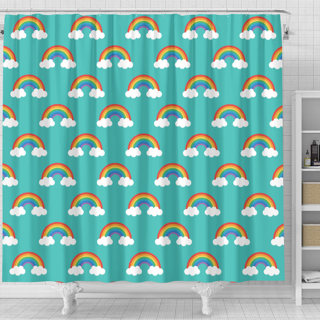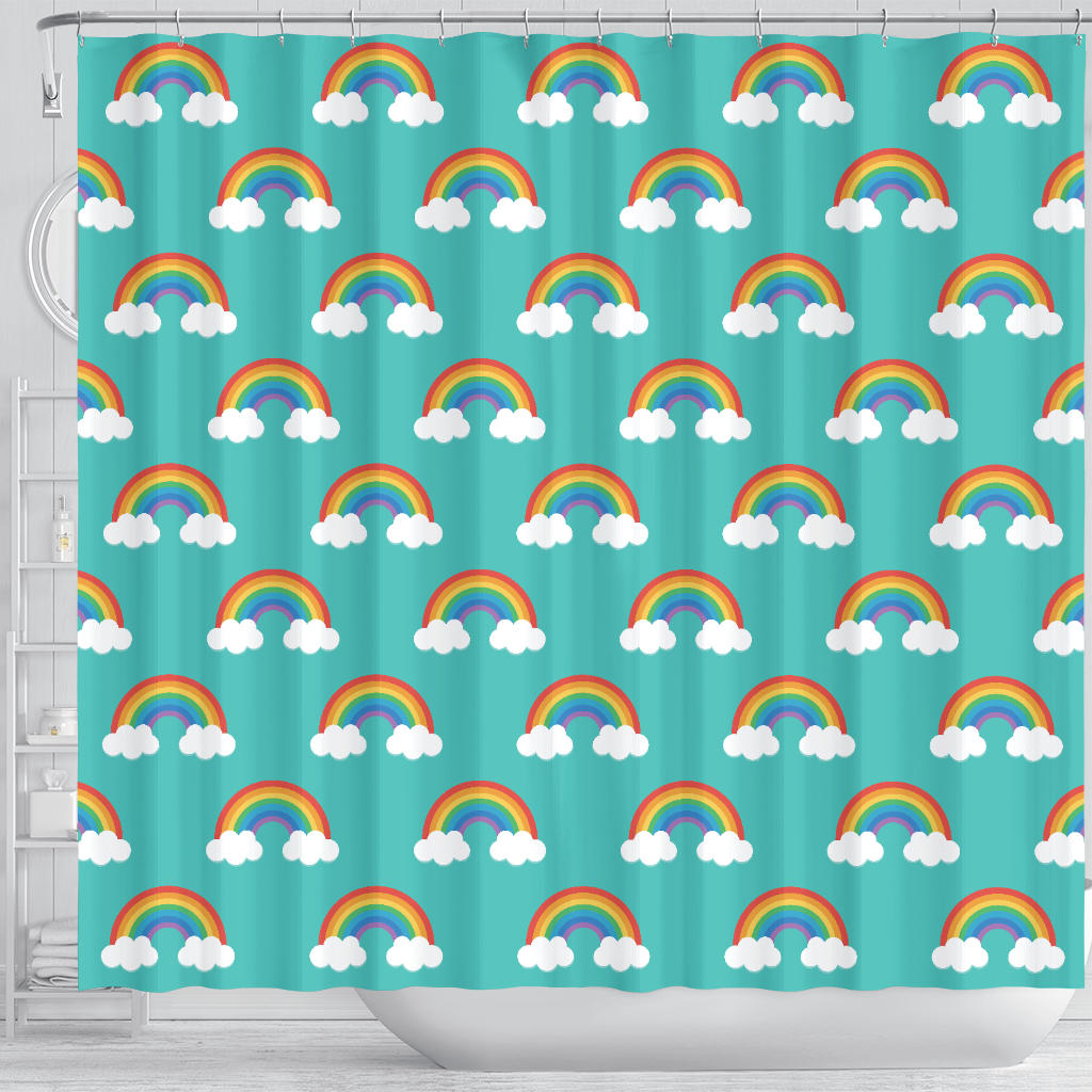Rainbow Pattern Green Background Shower Curtain Fulfilled In US