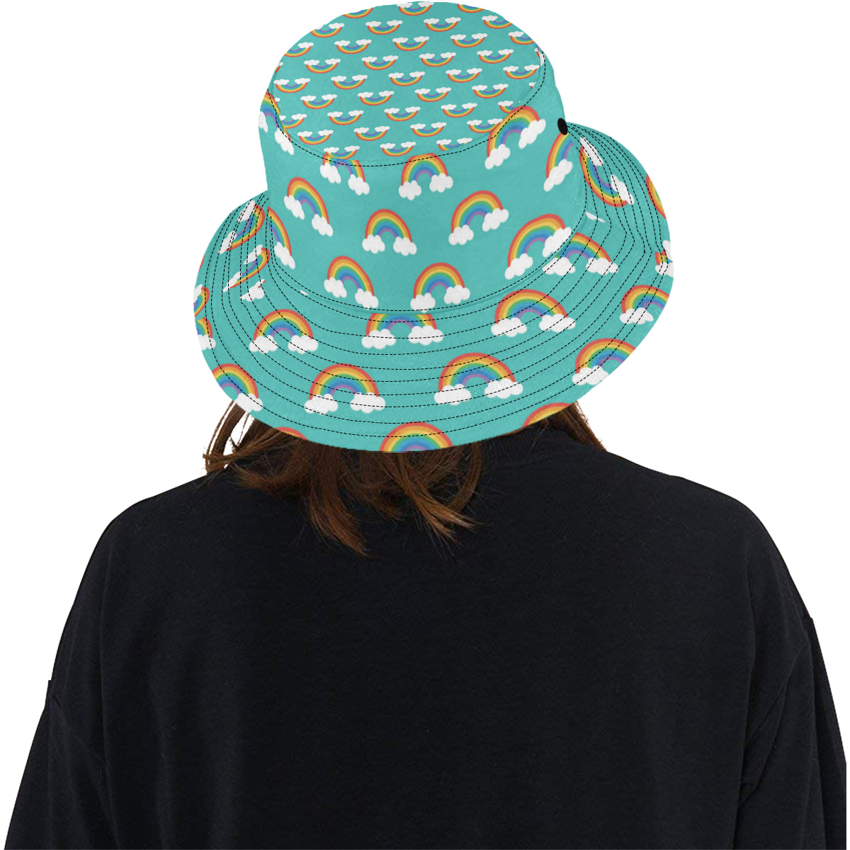 Rainbow pattern green background Unisex Bucket Hat is a uniqued design and limited item. It made to order, hand printed, and sewn with love in our factory.