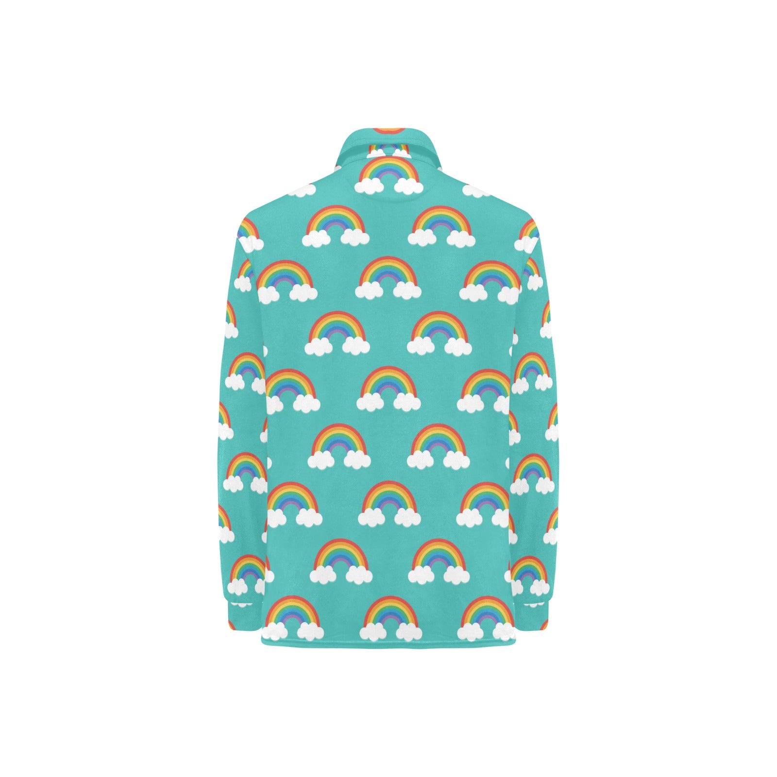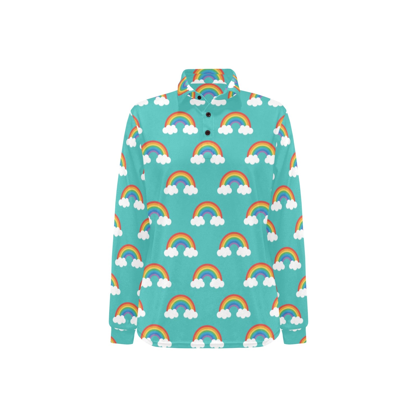 Rainbow pattern green background Women's Long Sleeve Polo Shirt