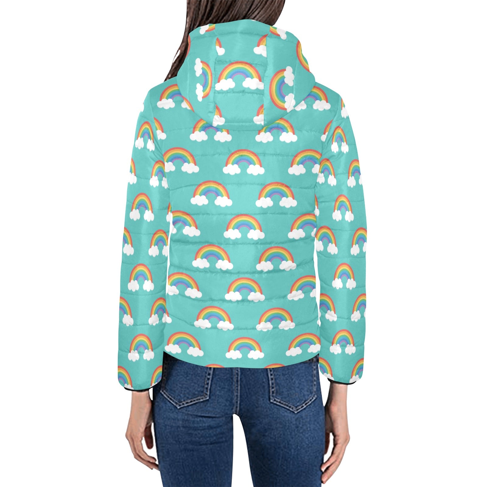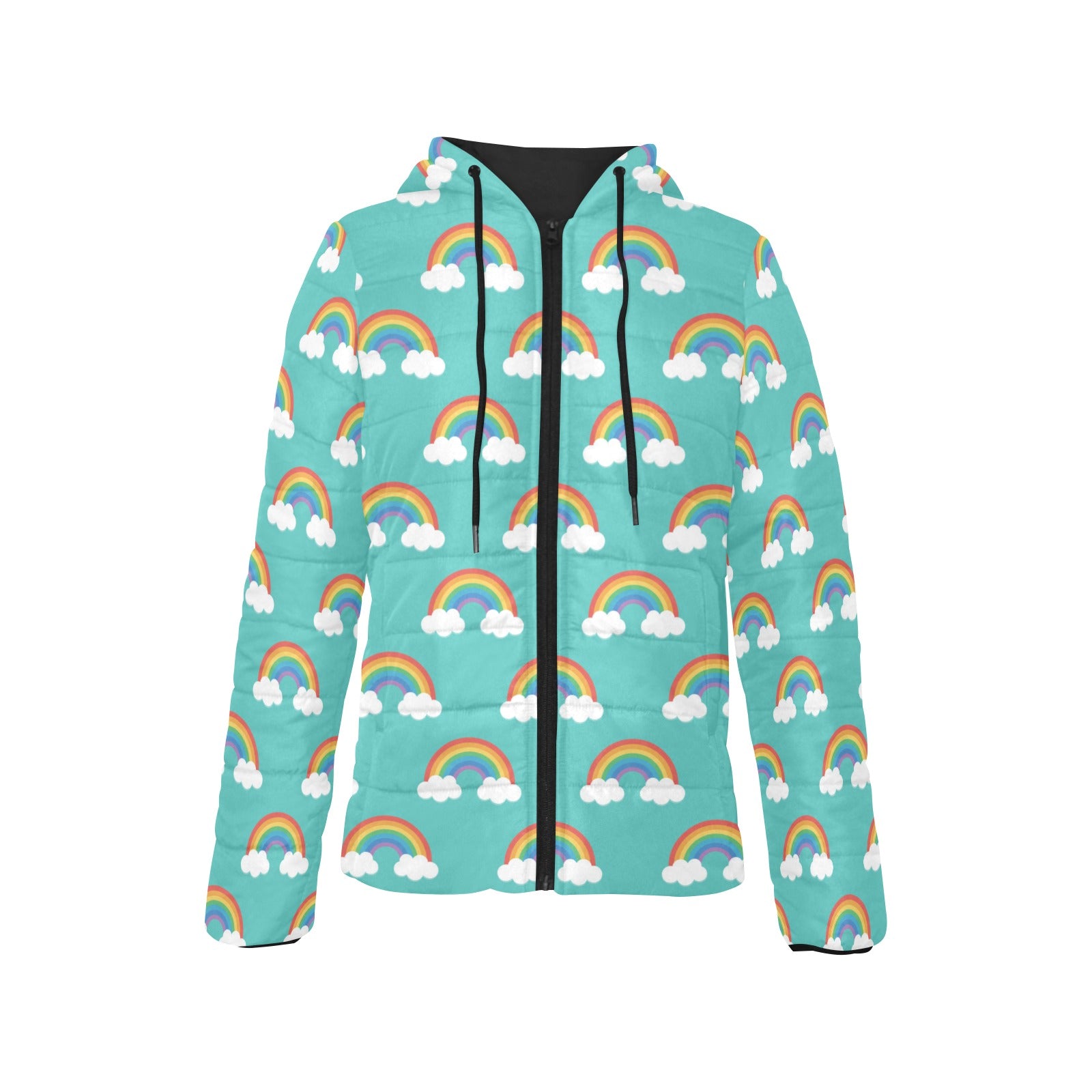 Rainbow pattern green background Women's Padded Hooded Jacket