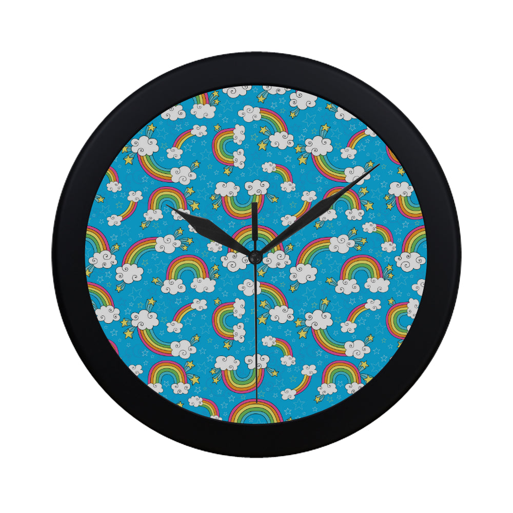 Rainbows Sky Clouds Pattern Elegant Black Wall Clock