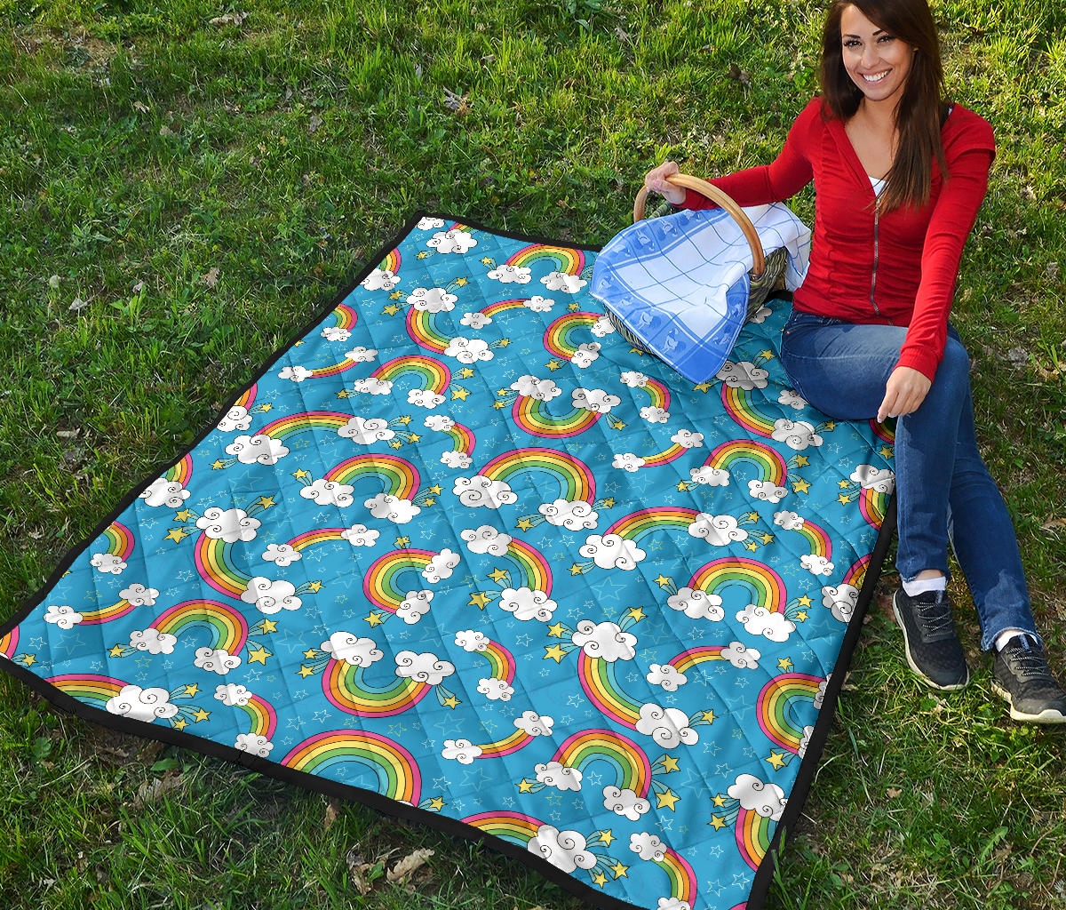 Rainbows Sky Clouds Pattern Premium Quilt is a uniqued design and limited item. It made to order, hand printed, and sewn with love in our factory.
