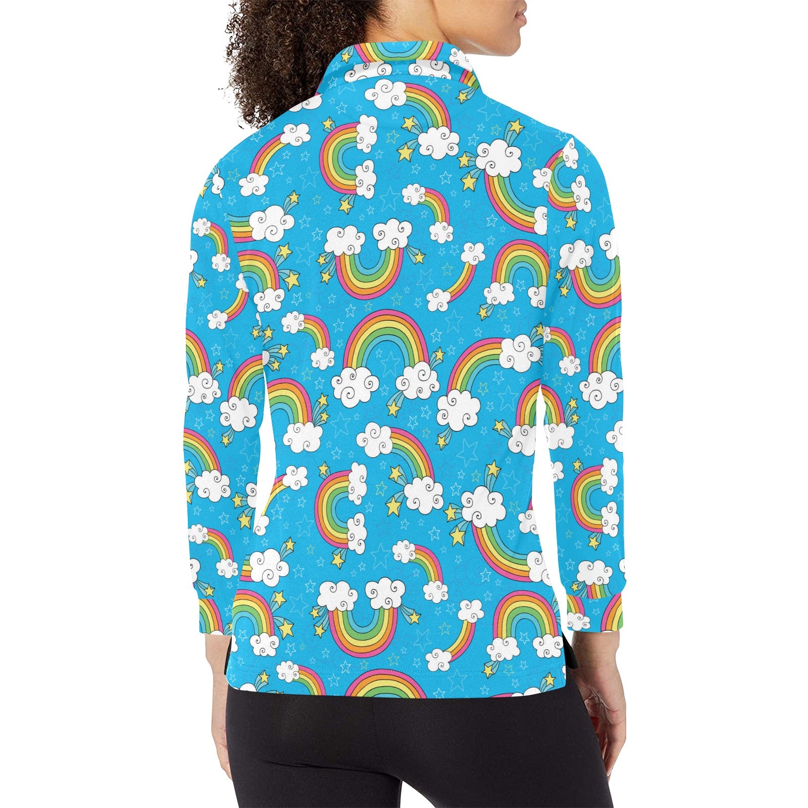 Rainbows Sky Clouds Pattern Women's Long Sleeve Polo Shirt