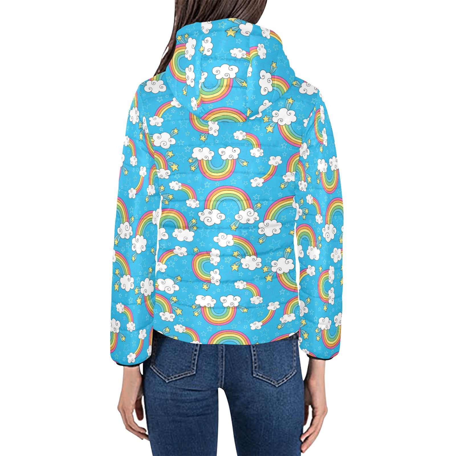 Rainbows Sky Clouds Pattern Women's Padded Hooded Jacket