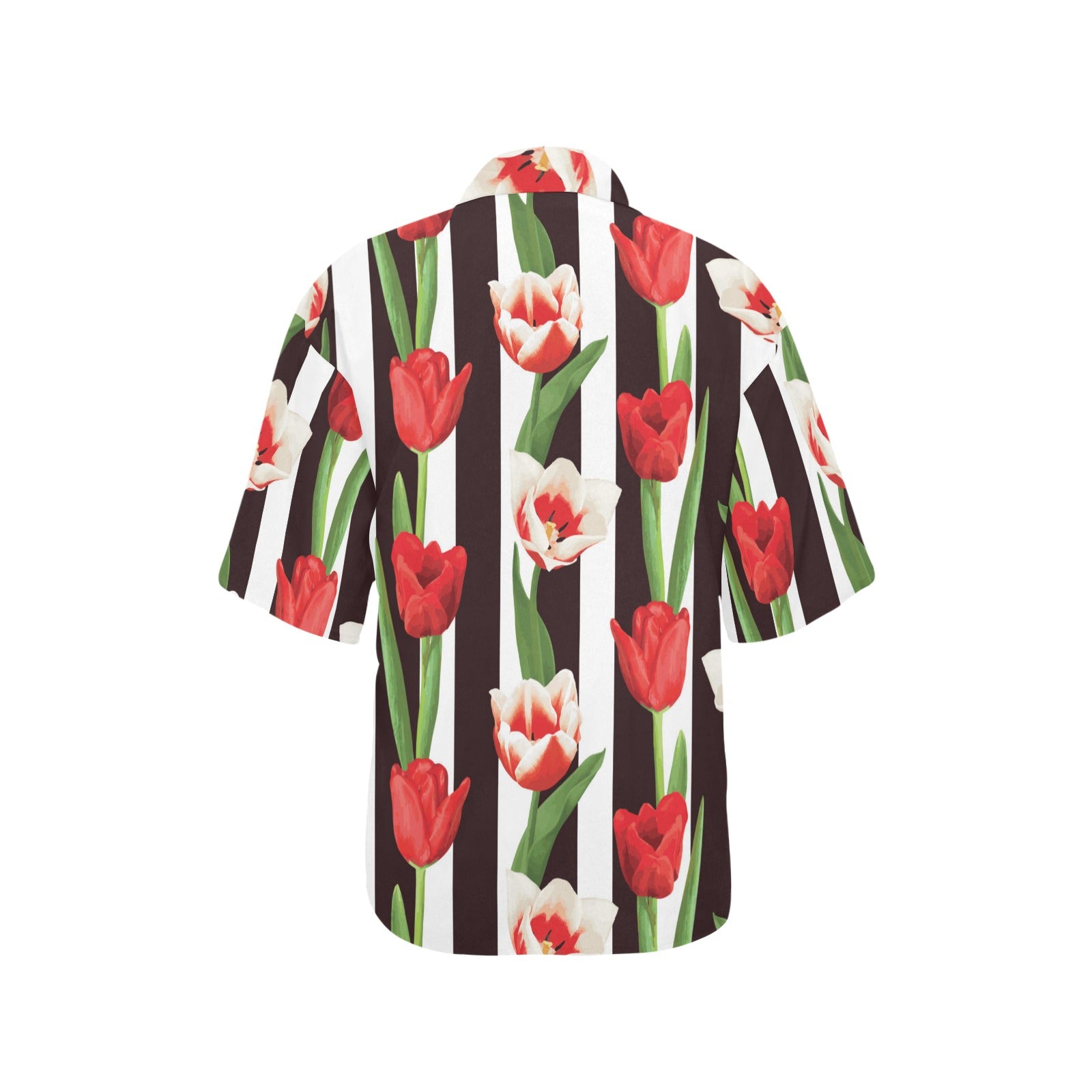 red and white tulips pattern Women's All Over Print Hawaiian Shirt