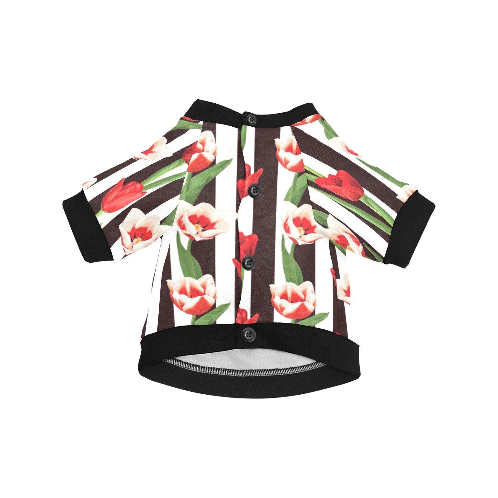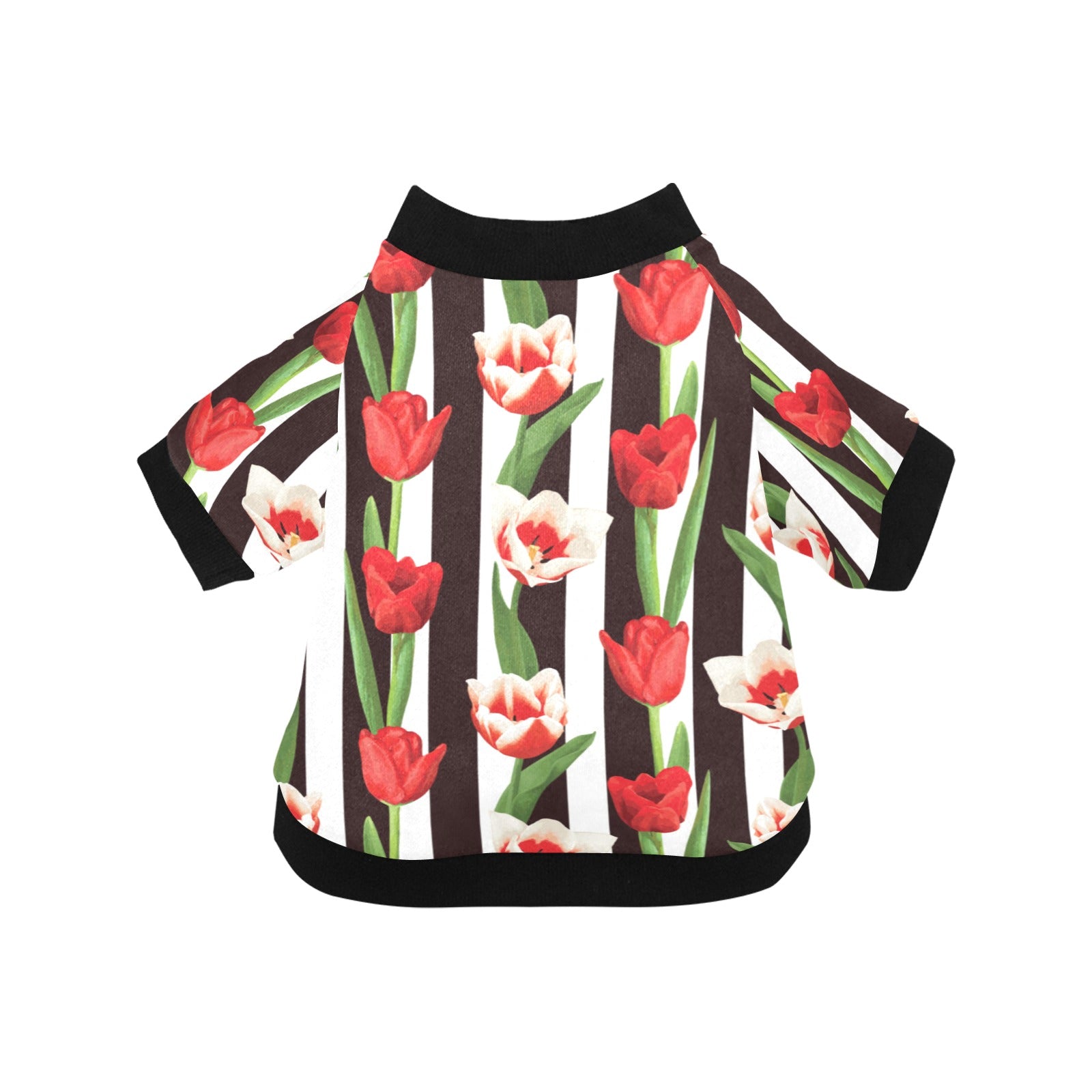 red and white tulips pattern All Over Print Pet Dog Round Neck Fuzzy Shirt