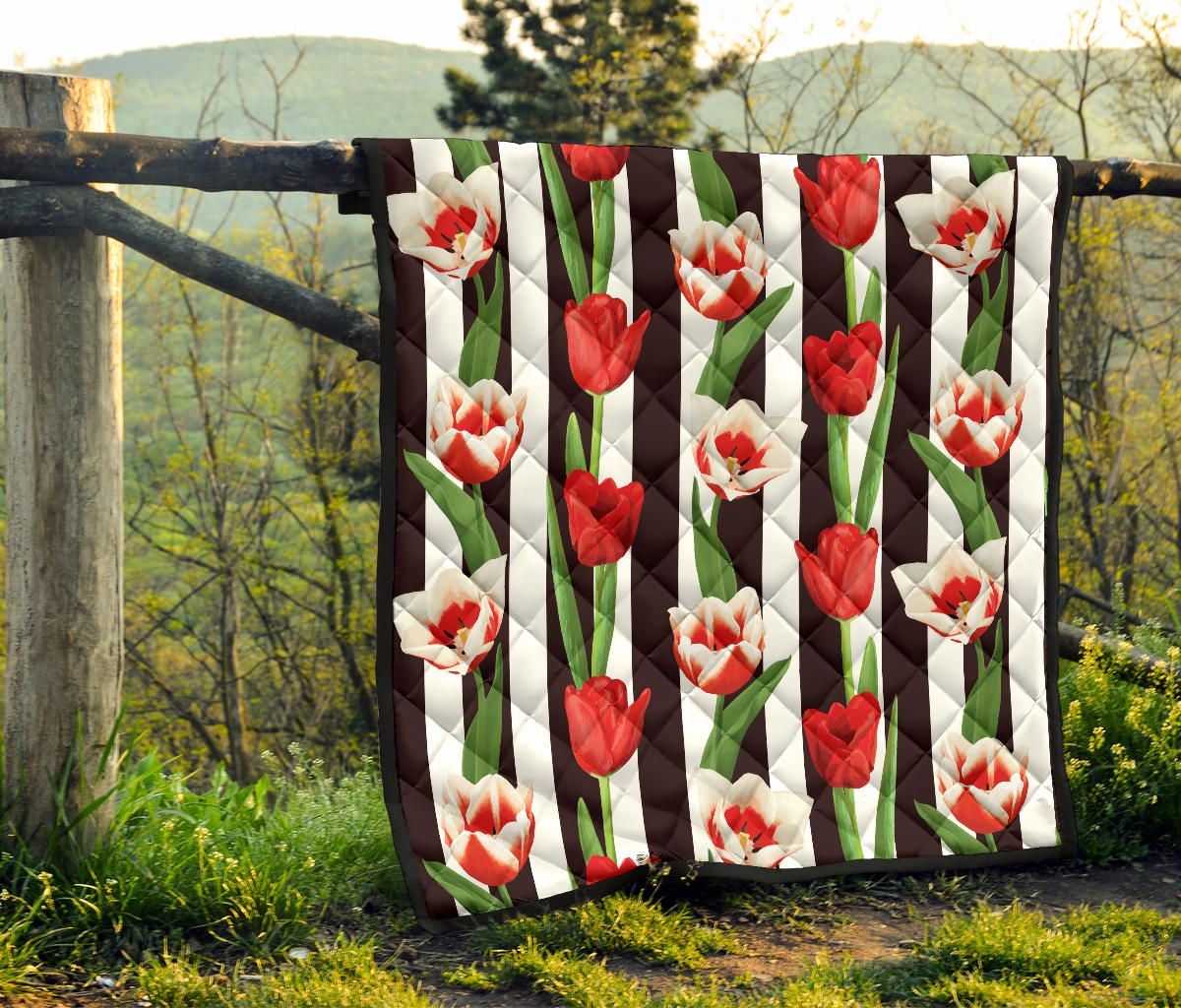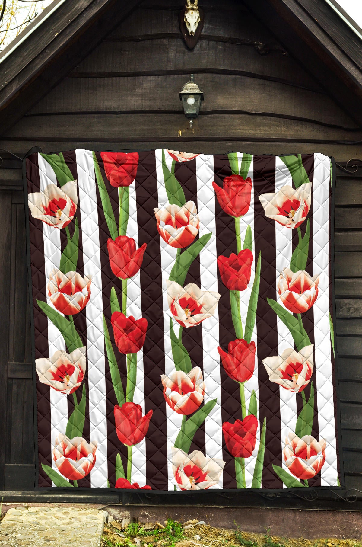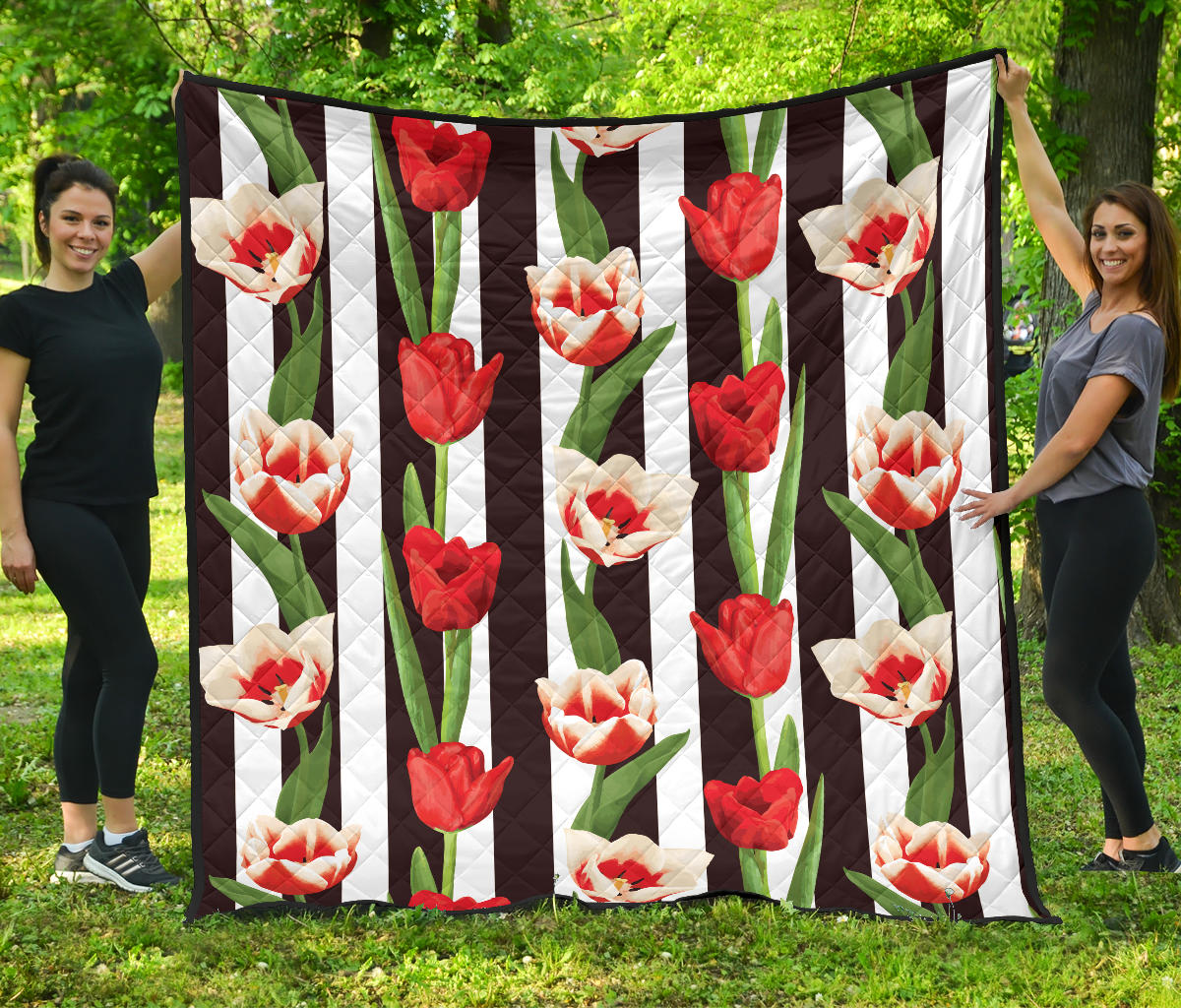 Red And White Tulips Pattern Premium Quilt is a uniqued design and limited item. It made to order, hand printed, and sewn with love in our factory.