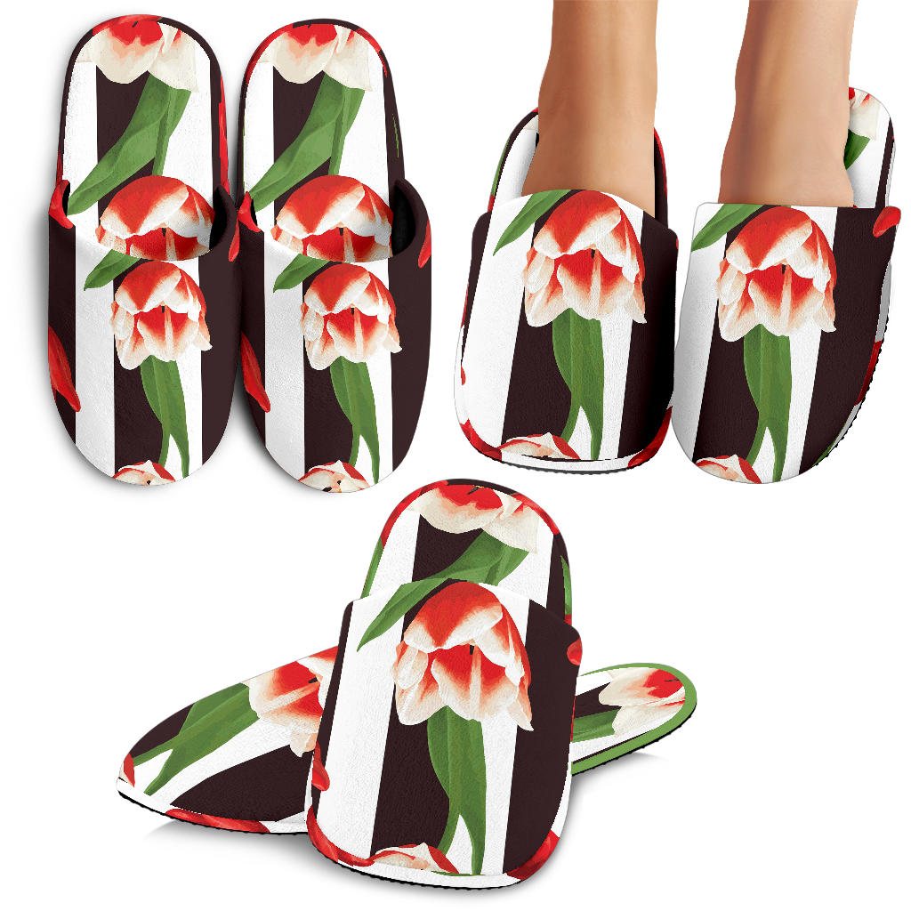 red and white tulips pattern Slippers are uniqued design and limited item. It made to order, hand printed, and sewn with love in our factory.