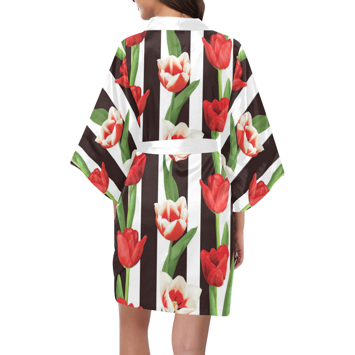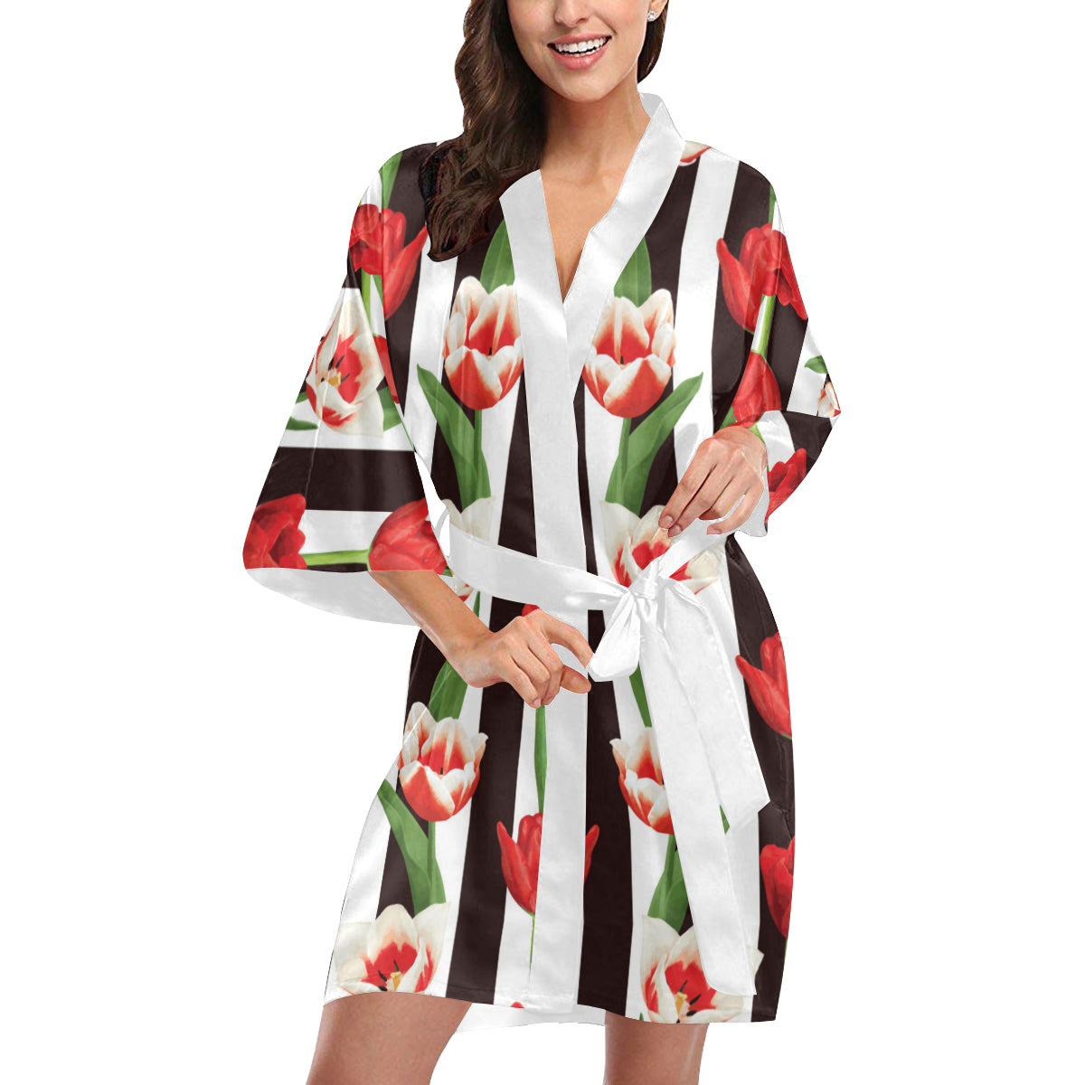 red and white tulips pattern Women's Short Kimono Robe is a uniqued design and limited item. It made to order, hand printed, and sewn with love in our factory.