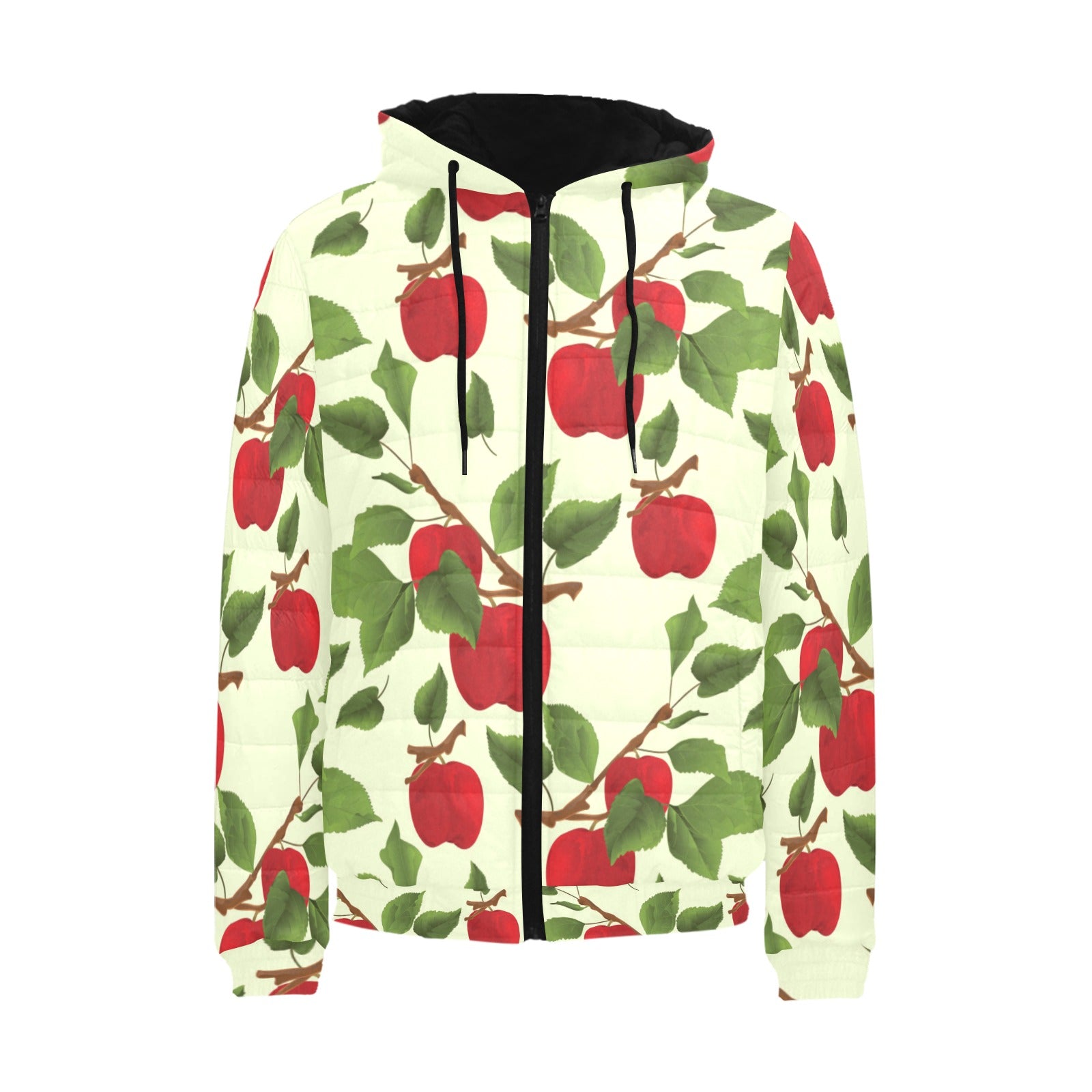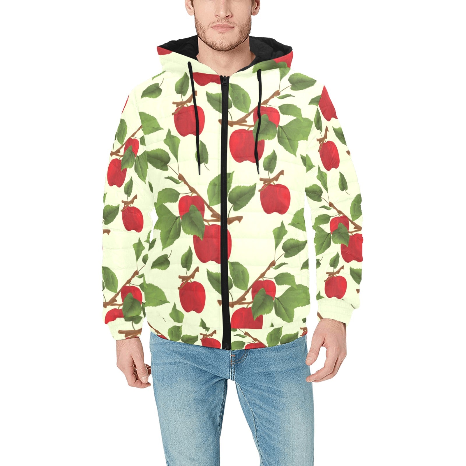 Red apples leaves pattern Men's Padded Hooded Jacket