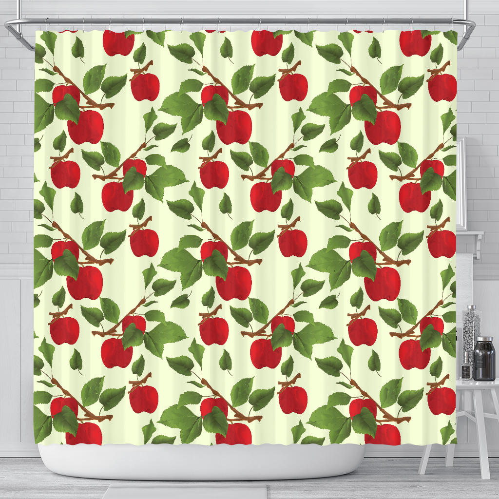 Red apples leaves pattern Shower Curtain is a uniqued design and limited item. It made to order, hand printed, and sewn with love in our factory.