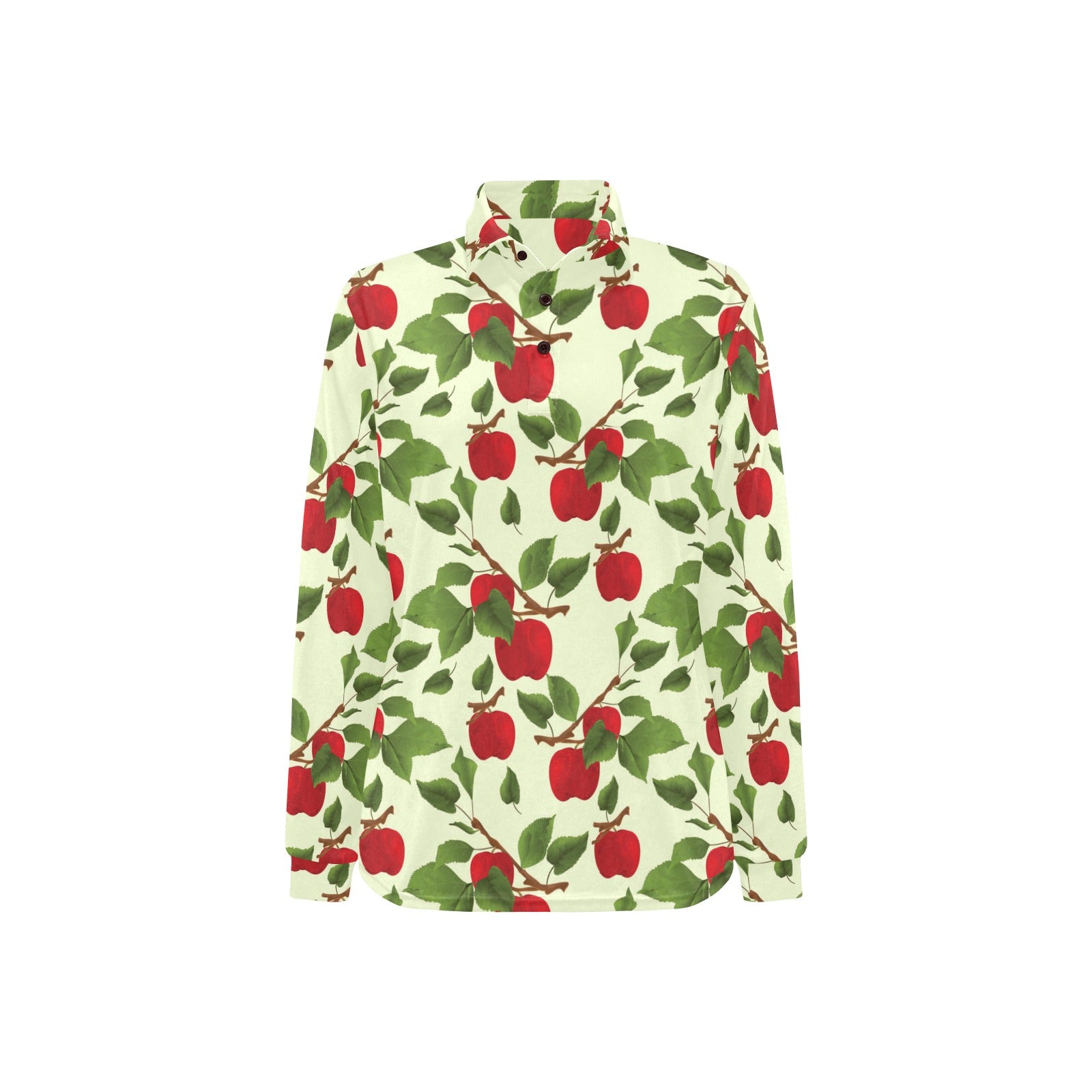 Red apples leaves pattern Women's Long Sleeve Polo Shirt