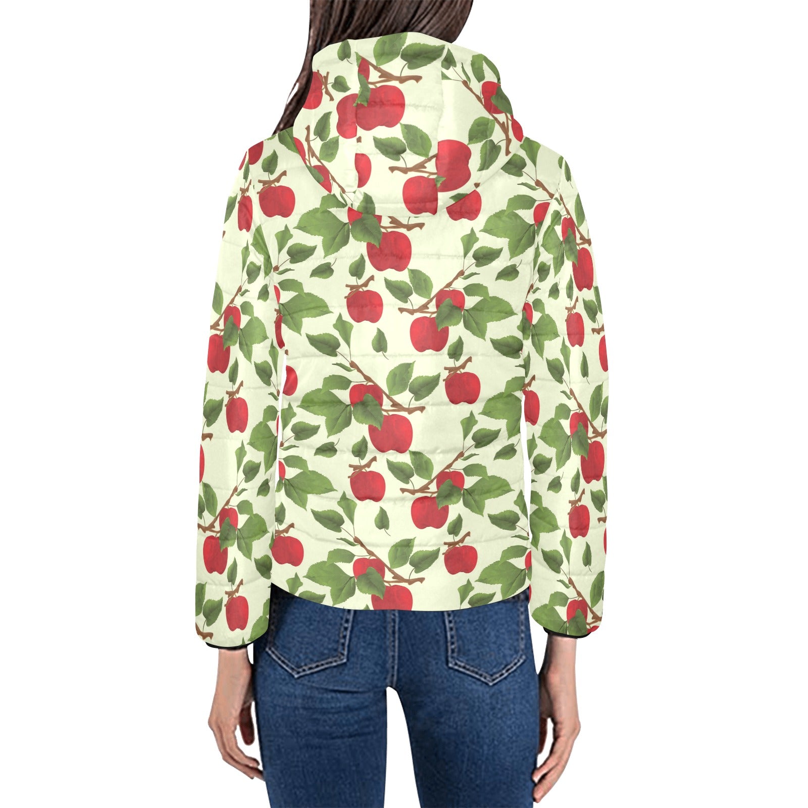 Red apples leaves pattern Women's Padded Hooded Jacket
