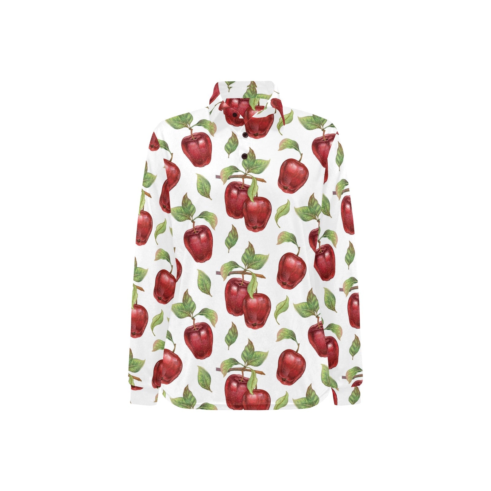 Red apples pattern Women's Long Sleeve Polo Shirt