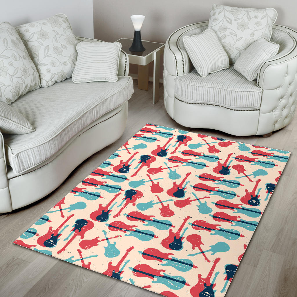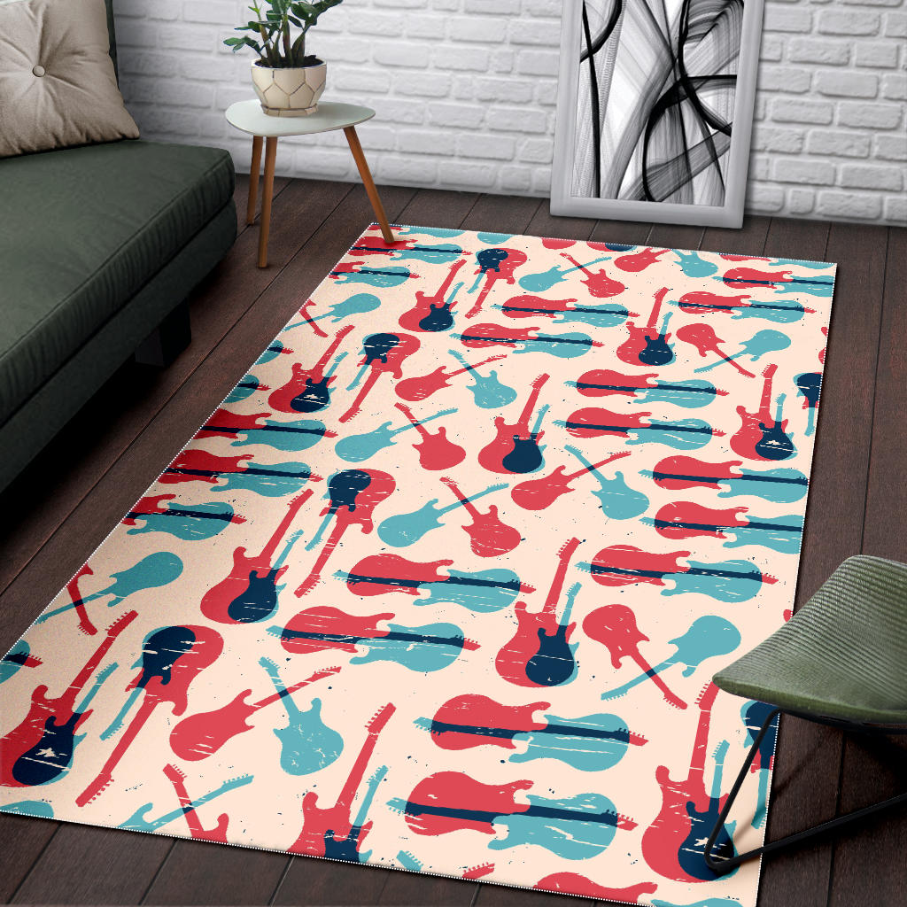 Red Blue guitar pattern Area Rug is a uniqued design and limited item. It made to order, hand printed, and sewn with love in our factory.