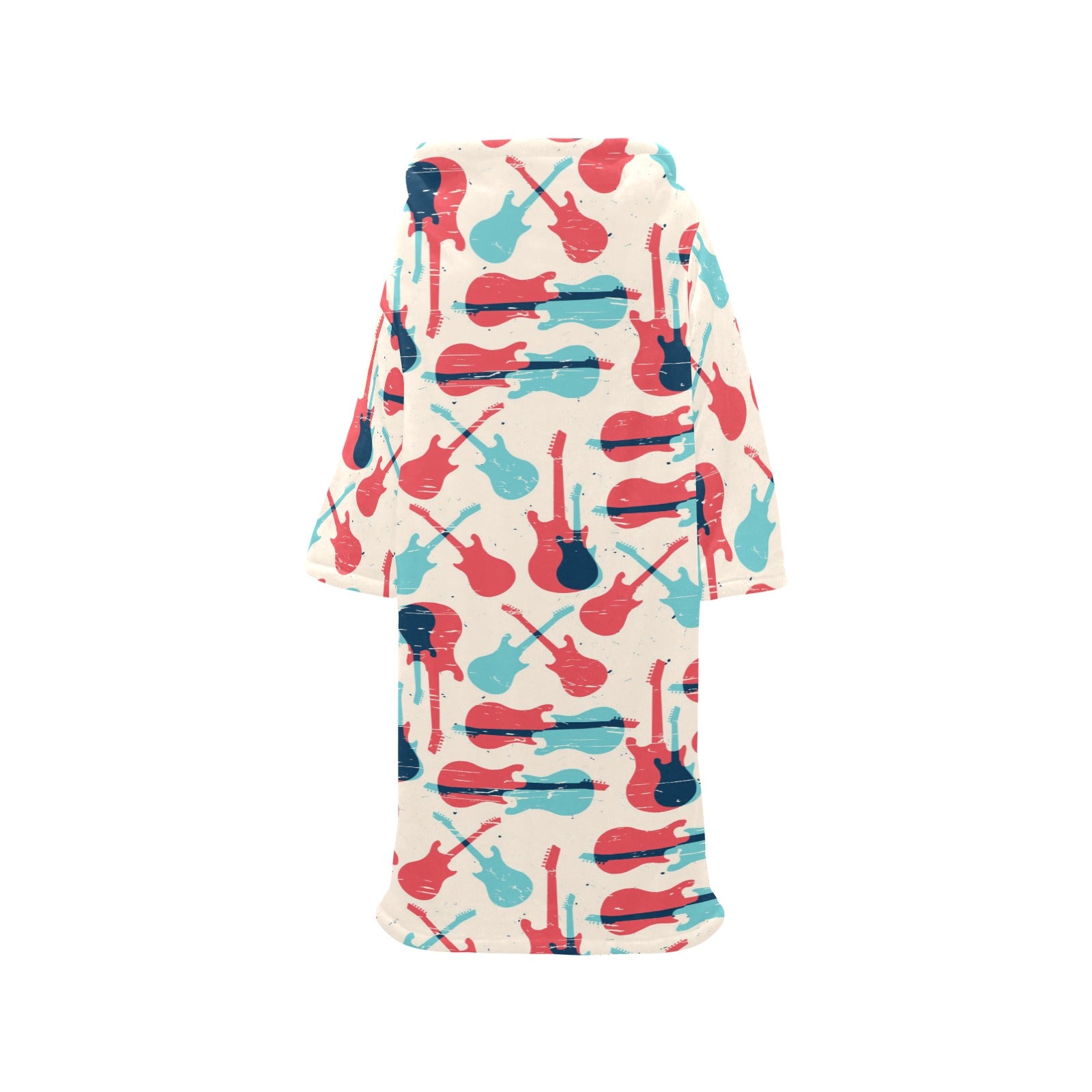 Red Blue guitar pattern Blanket Robe with Sleeves