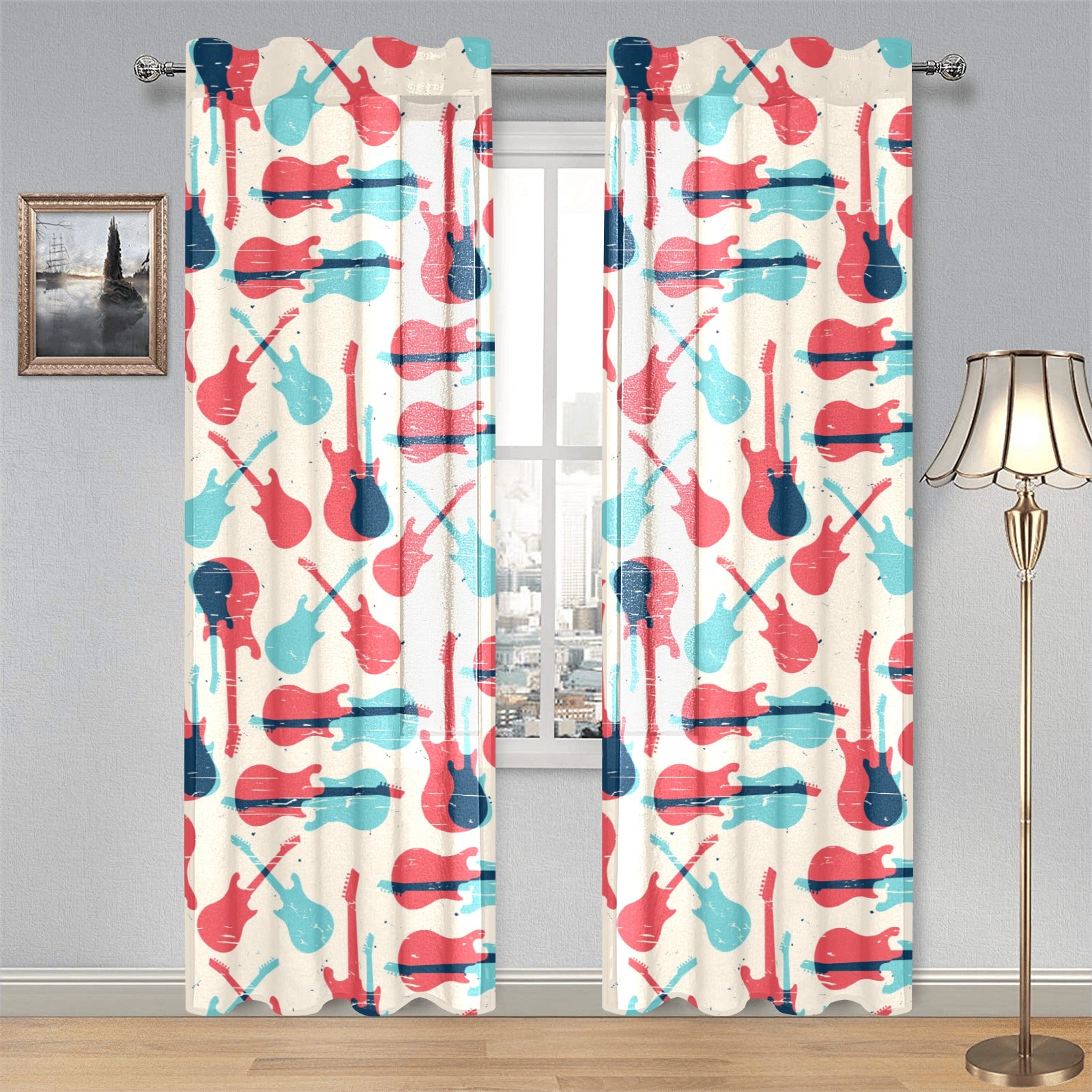 Red Blue guitar pattern Gauze Curtain