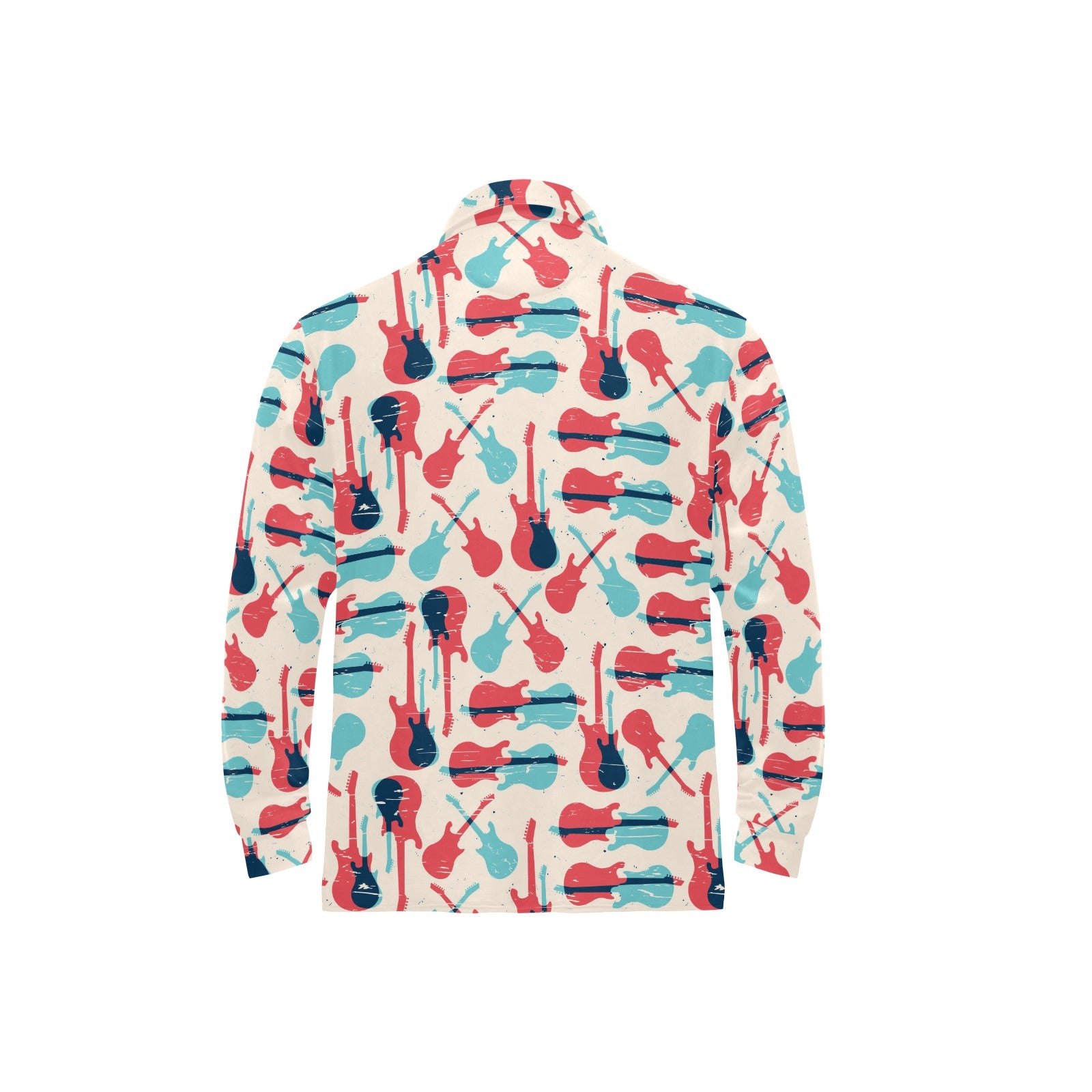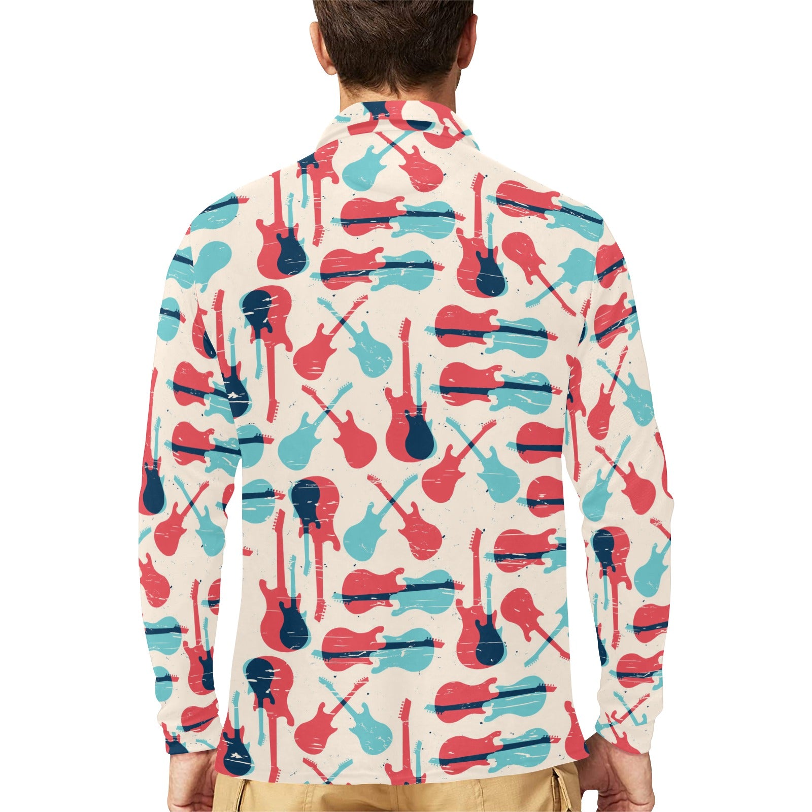 Red Blue guitar pattern Men's Long Sleeve Polo Shirt