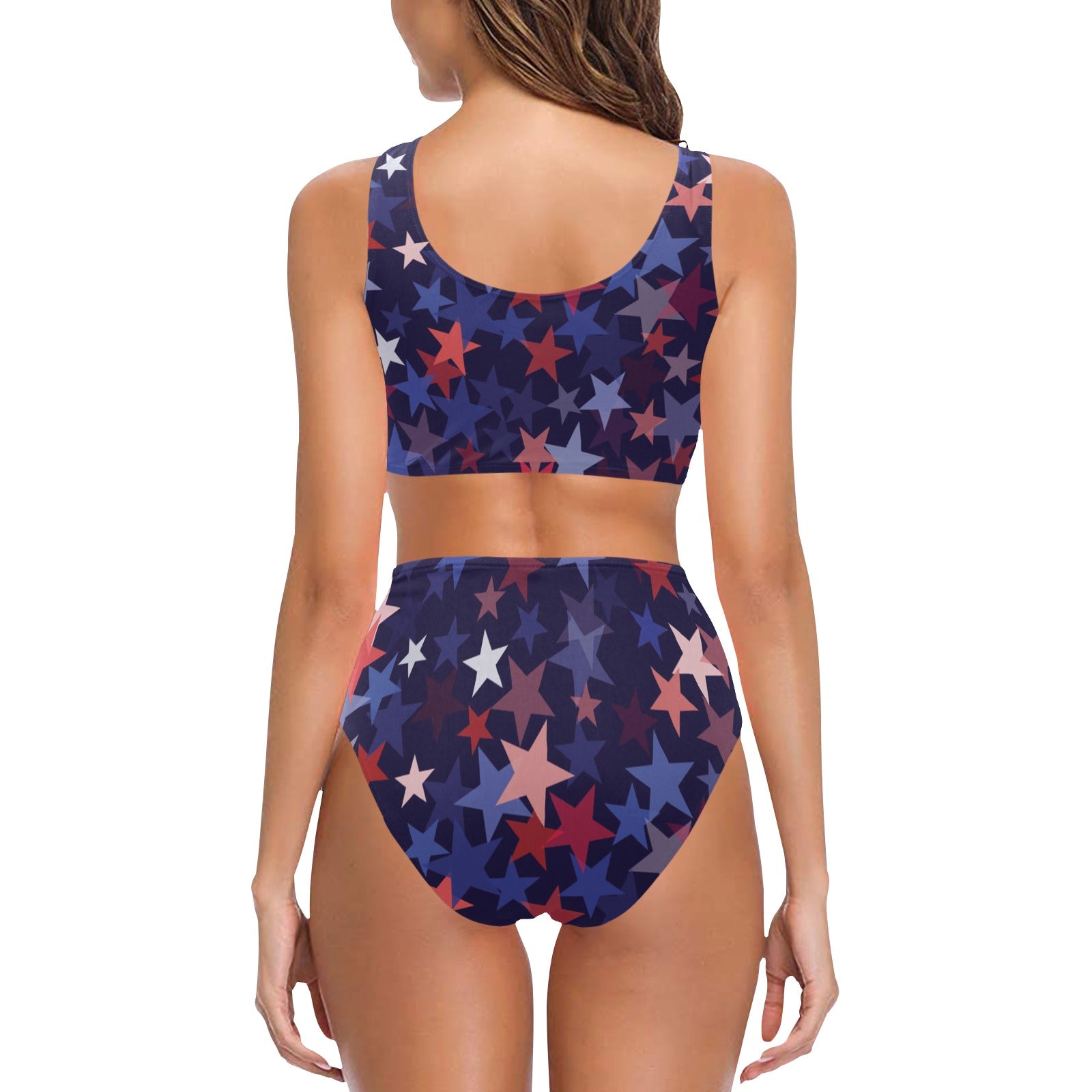 Red blue star pattern Chest Bowknot High Waisted Bikini Swimsuit