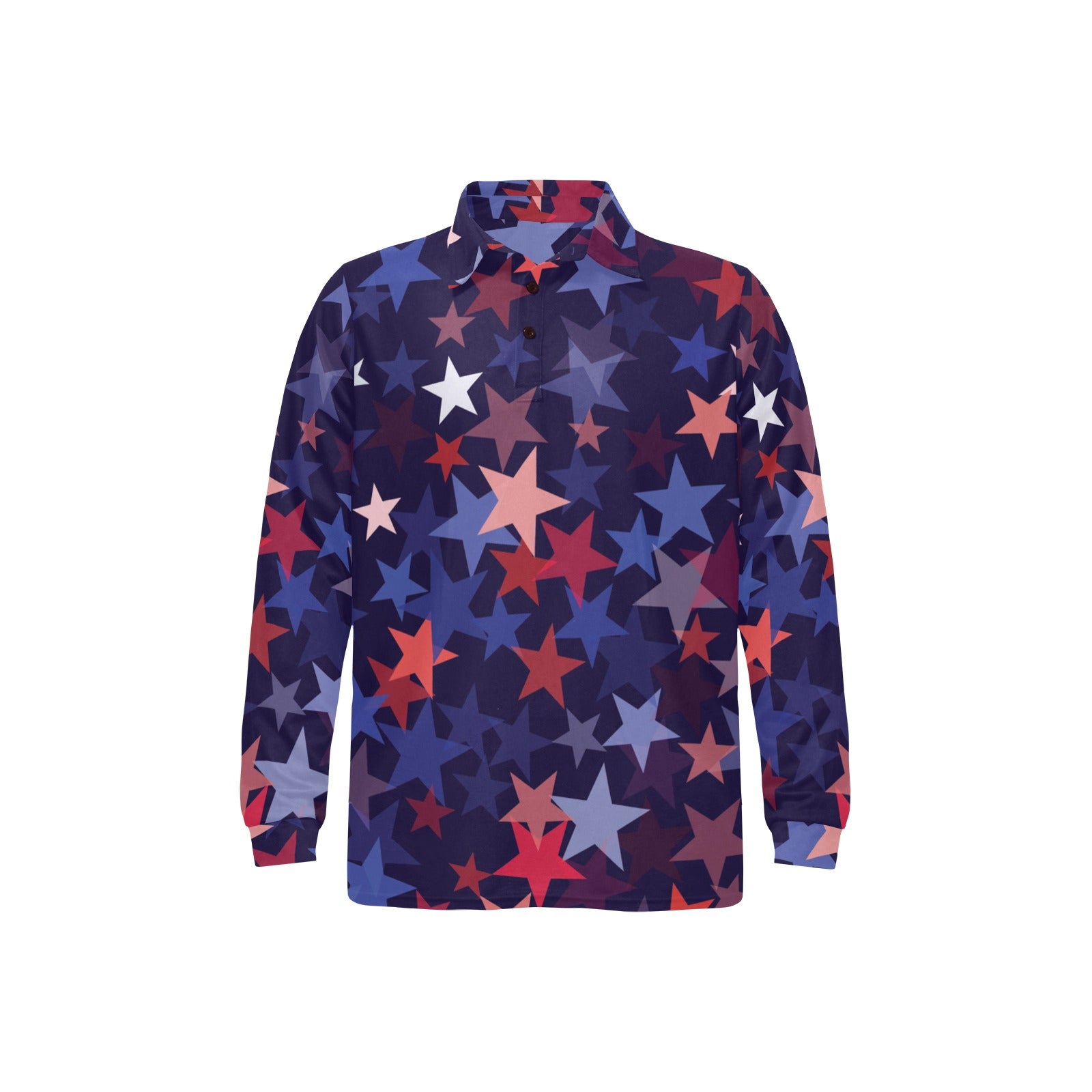 Red blue star pattern Men's Long Sleeve Polo Shirt