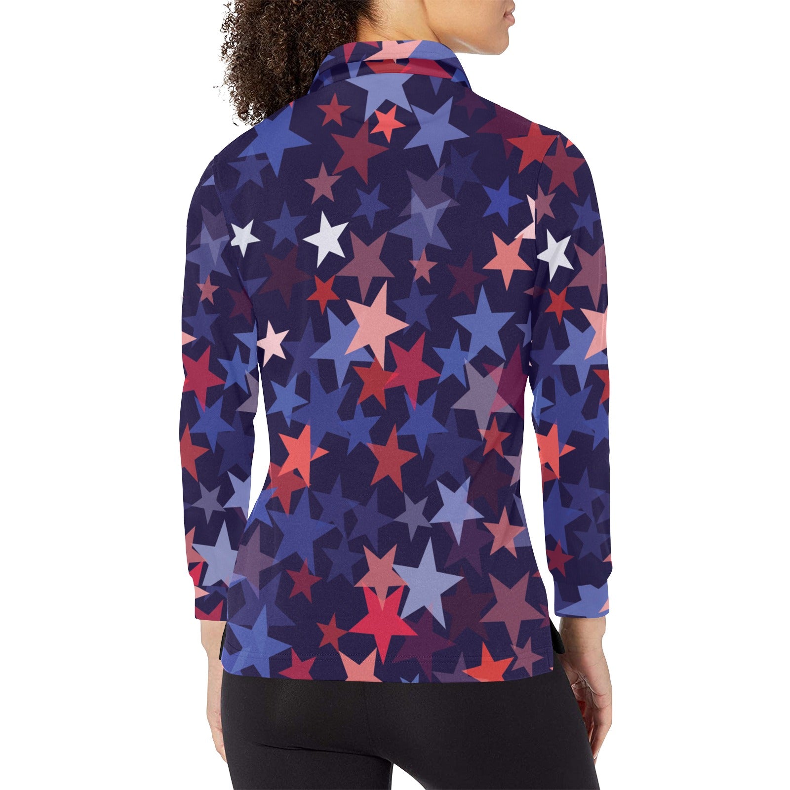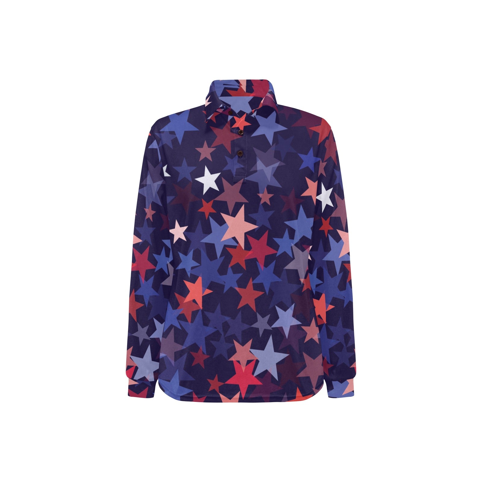 Red blue star pattern Women's Long Sleeve Polo Shirt