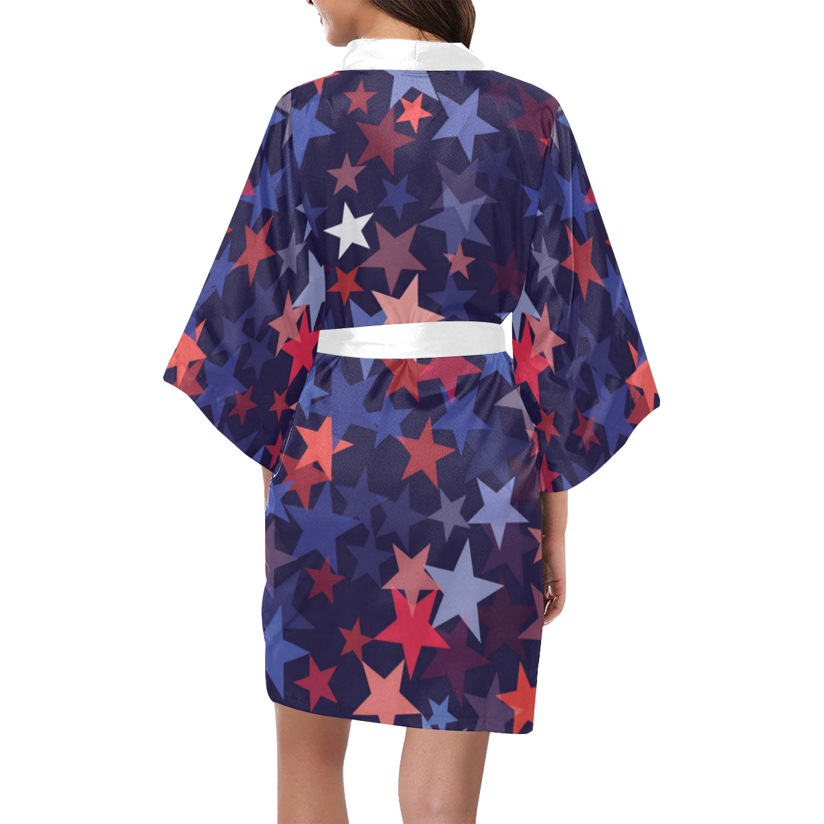 Red blue star pattern Women's Short Kimono Robe is a uniqued design and limited item. It made to order, hand printed, and sewn with love in our factory.