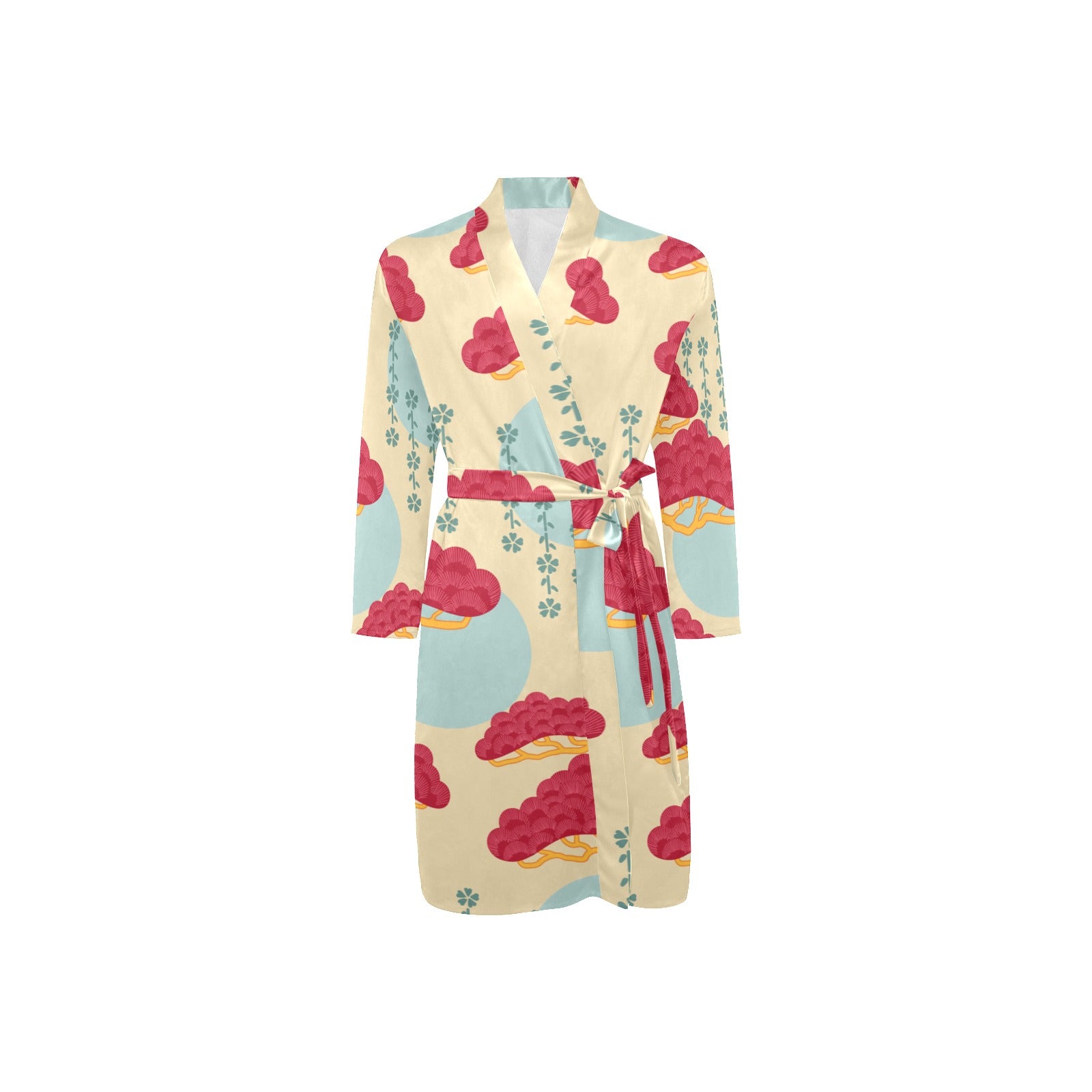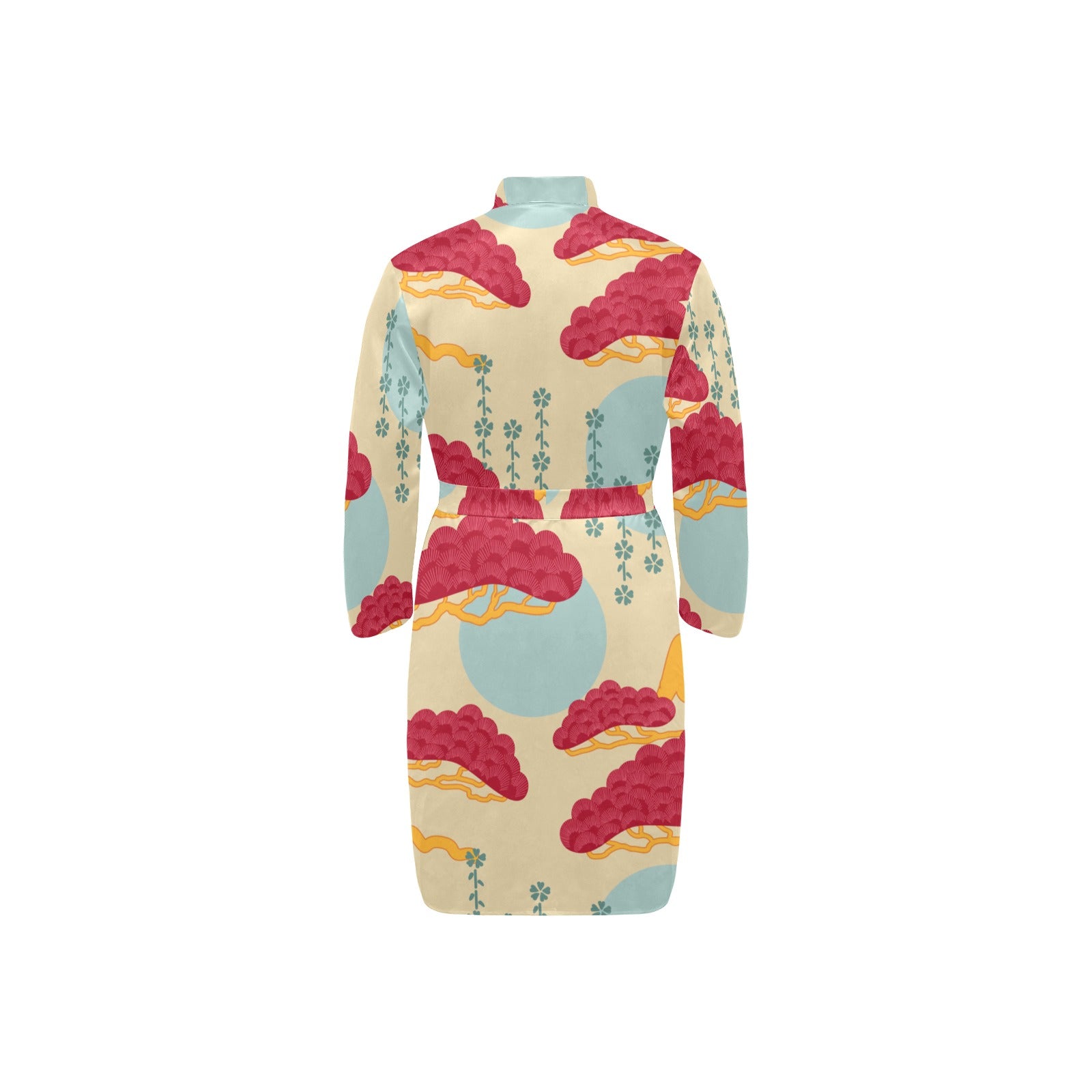 Red Bonsai gray sun japanese pattern Men's Long Sleeve Belted Night Robe