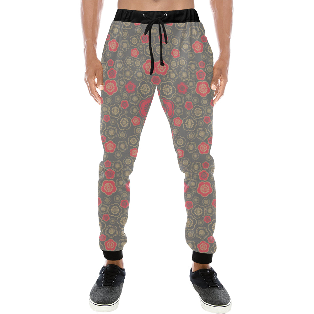 Red gold Sakura cherry blossom gray background Unisex Casual Sweatpants