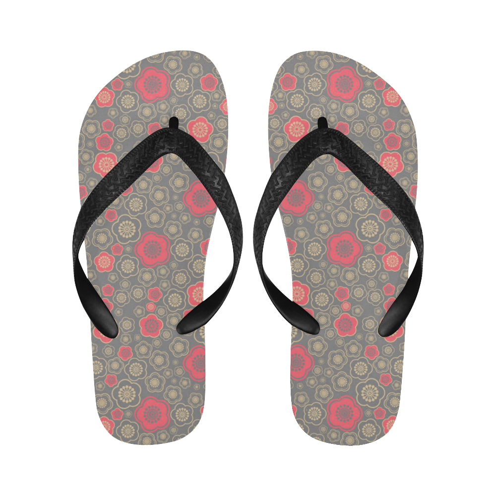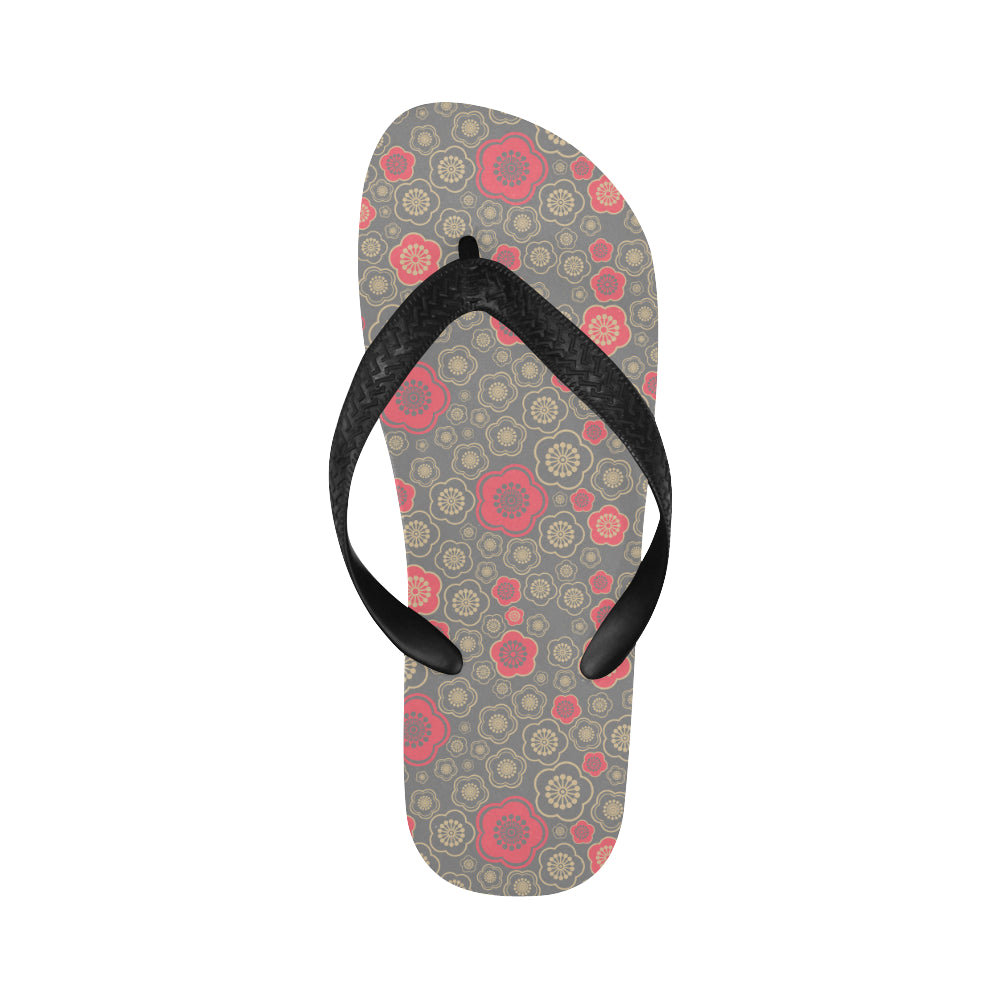 Red gold Sakura cherry blossom gray background Unisex Flip Flops is a uniqued design and limited item. It made to order, hand printed, and sewn with love in our factory.