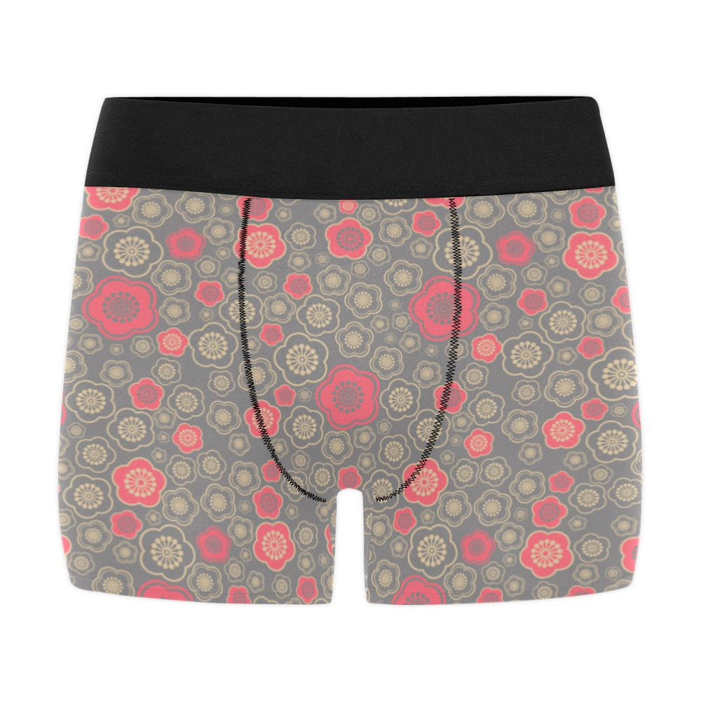 Red gold Sakura cherry blossom gray background Men's All Over Print Boxer Briefs Men's Underwear