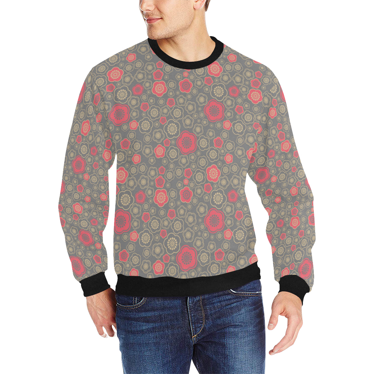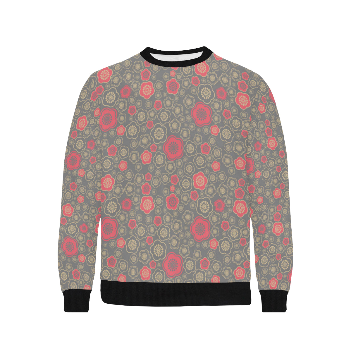 Red gold Sakura cherry blossom gray background Men's Crew Neck Sweatshirt is a uniqued design and limited item. It made to order, hand printed, and sewn with love in our factory.