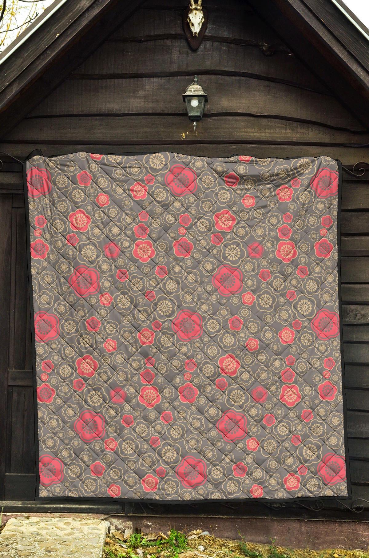 Red Gold Sakura Cherry Blossom Gray Background Premium Quilt is a uniqued design and limited item. It made to order, hand printed, and sewn with love in our factory.