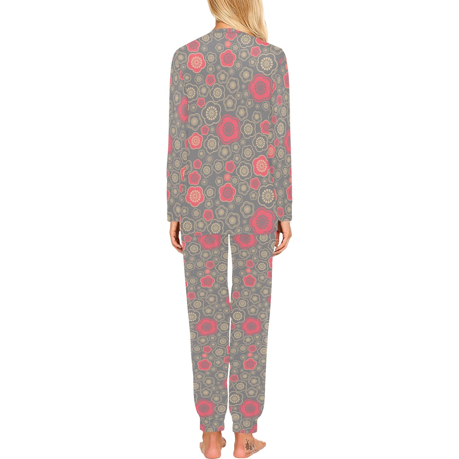 Red gold Sakura cherry blossom gray background Women's All Over Print Pajama Set