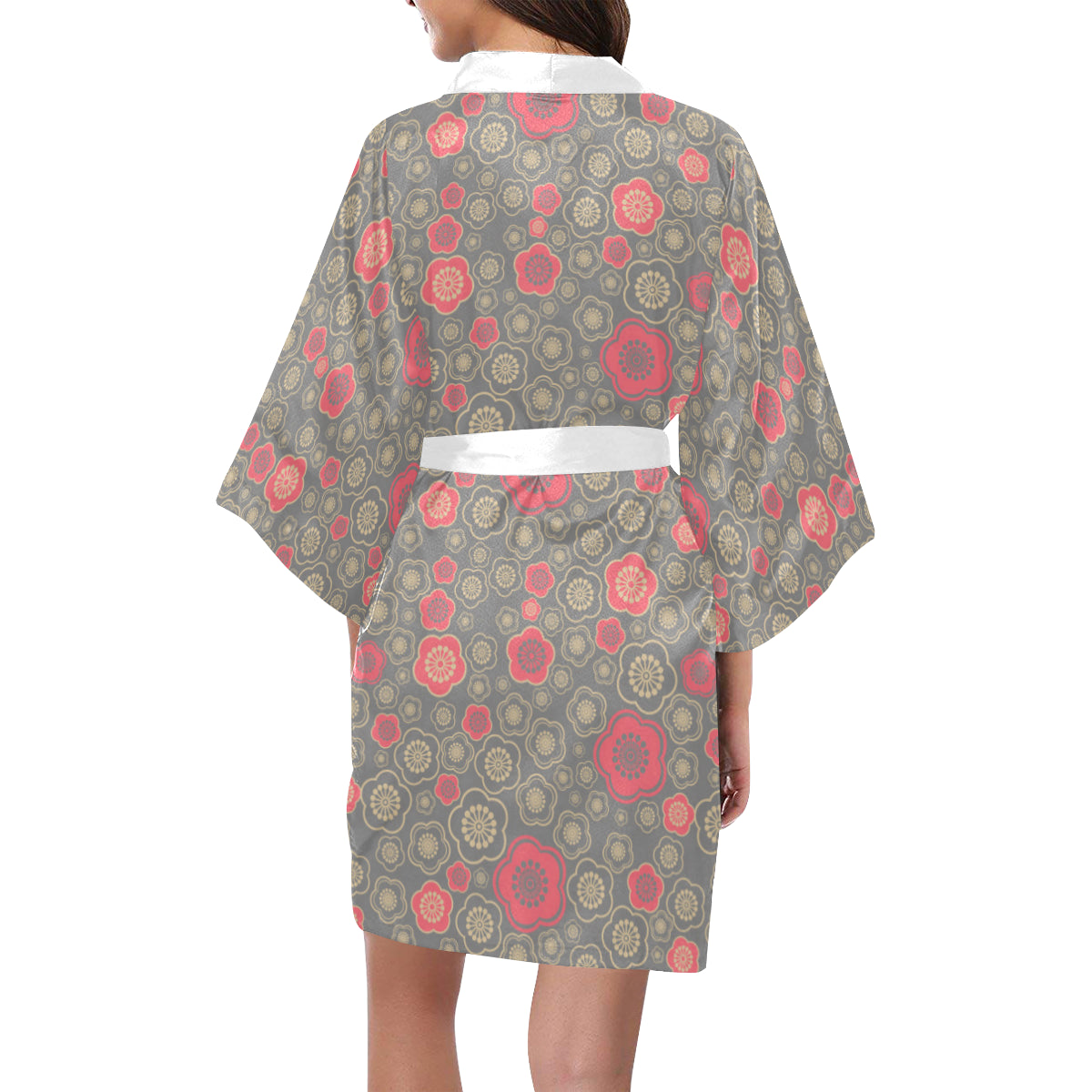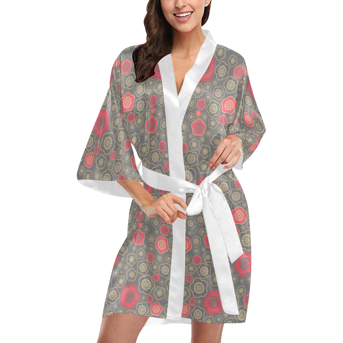 Red gold Sakura cherry blossom gray background Women's Short Kimono Robe is a uniqued design and limited item. It made to order, hand printed, and sewn with love in our factory.