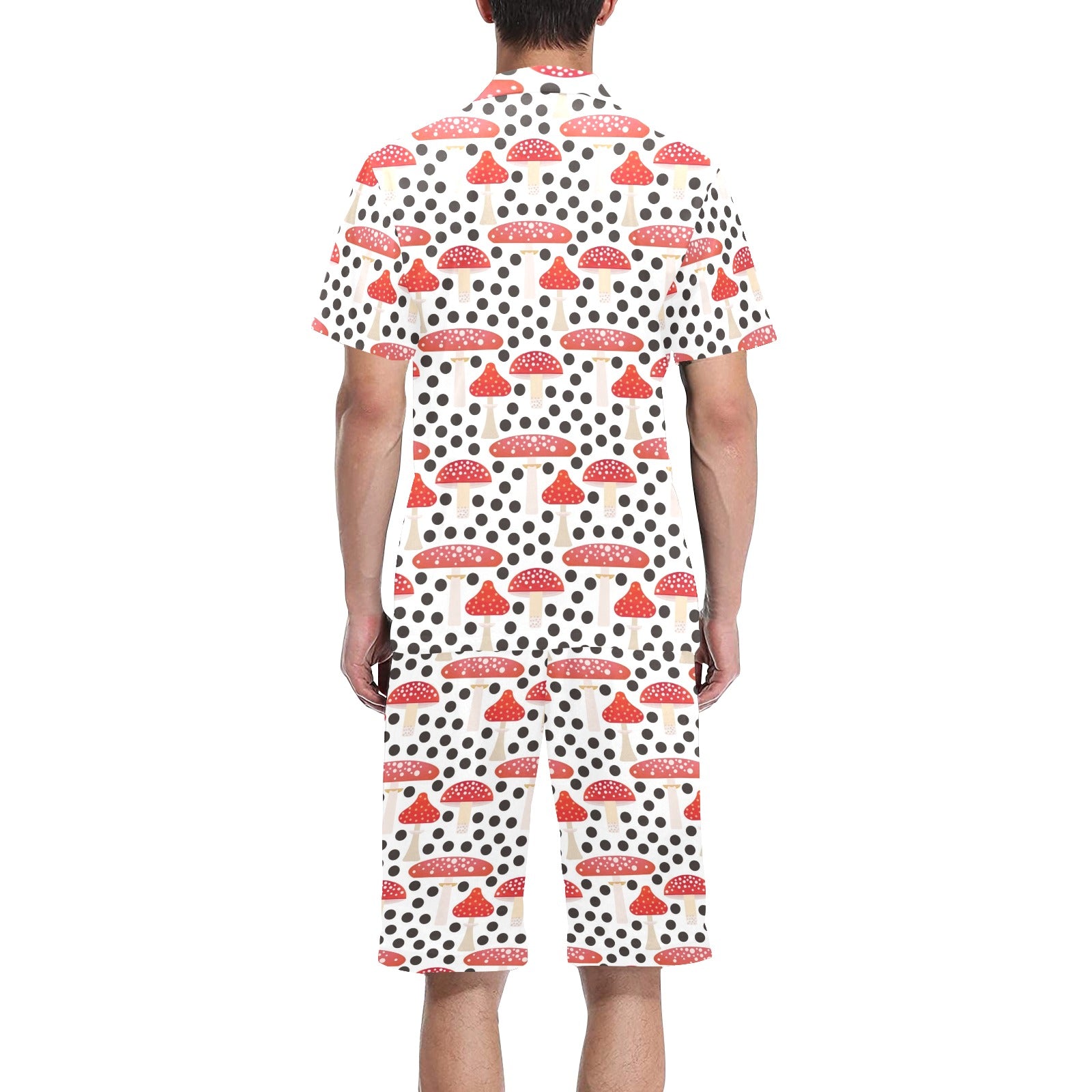 Red mushroom dot pattern Men's V-Neck Short Pajama Set