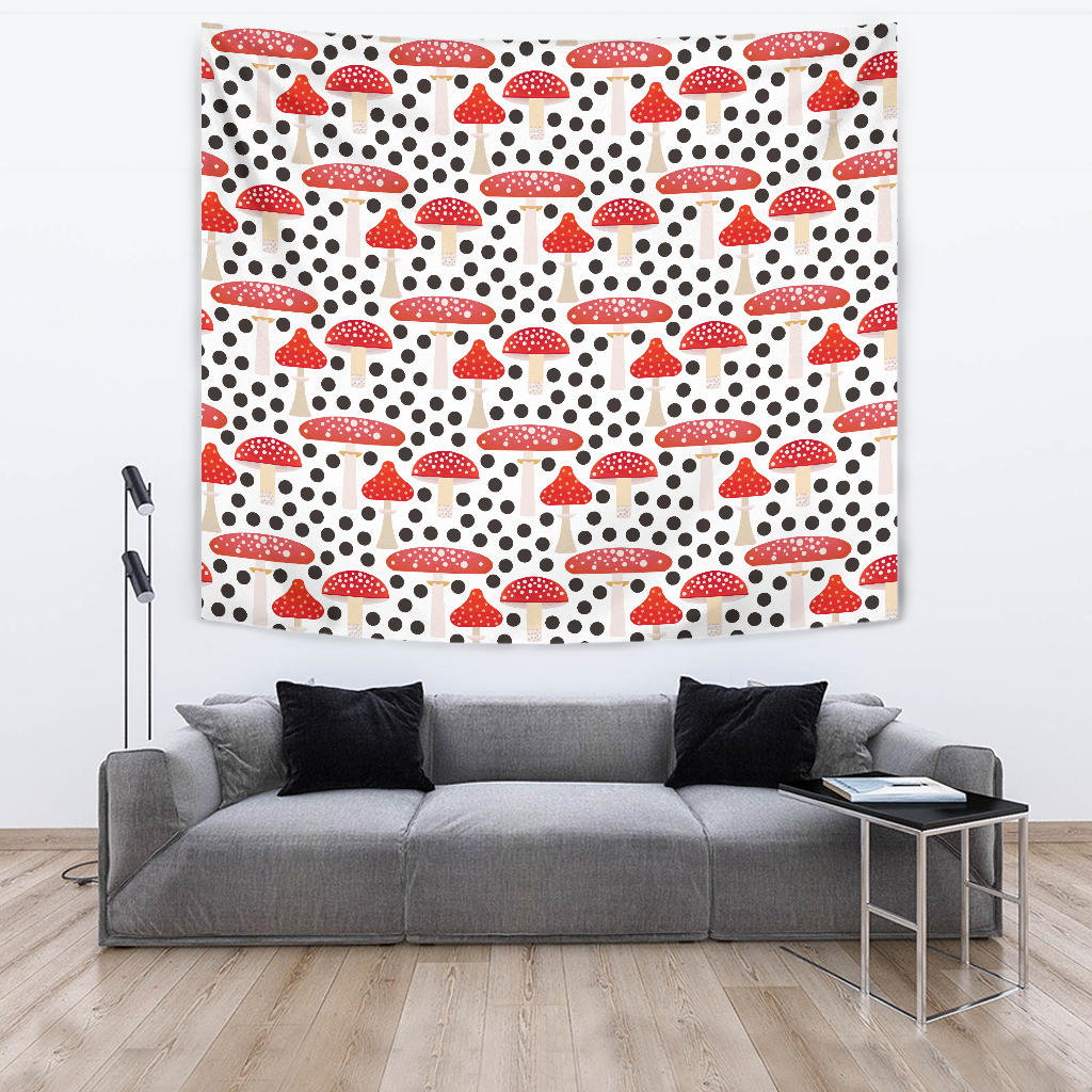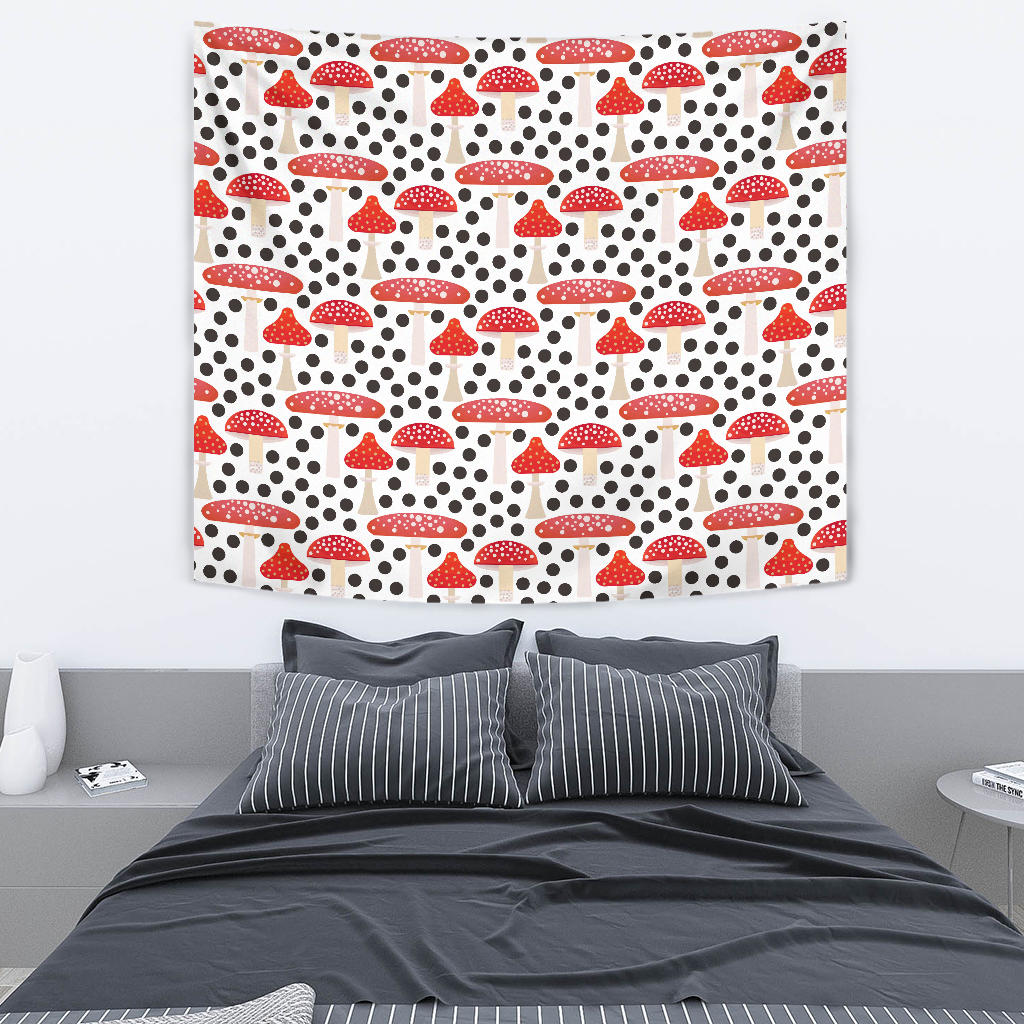 Red mushroom dot pattern Tapestry is a uniqued design and limited item. It made to order, hand printed, and sewn with love in our factory.