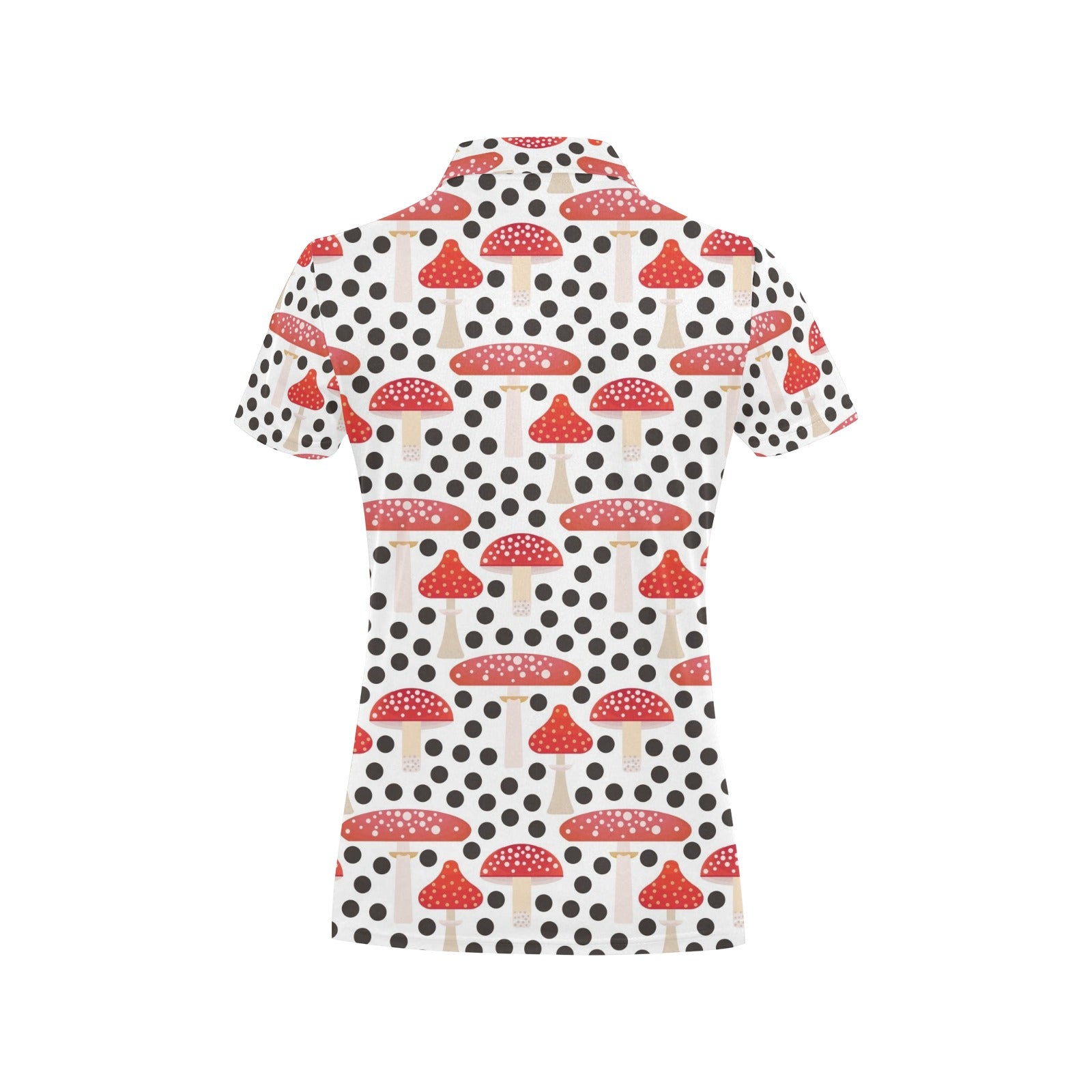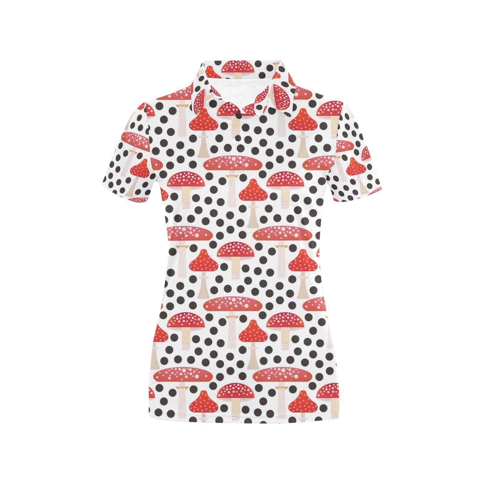 Red mushroom dot pattern Women's All Over Print Polo Shirt