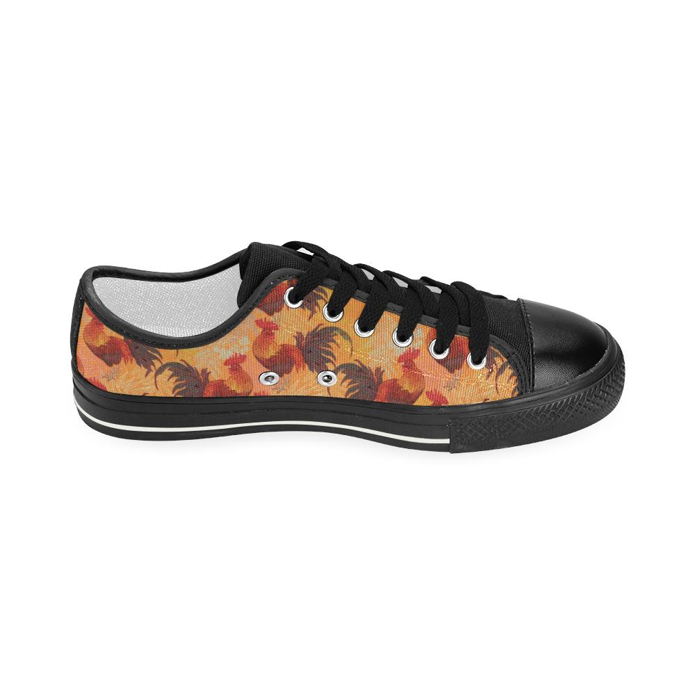 red rooster chicken cock pattern Kids' Boys' Girls' Low Top Canvas Shoes Black