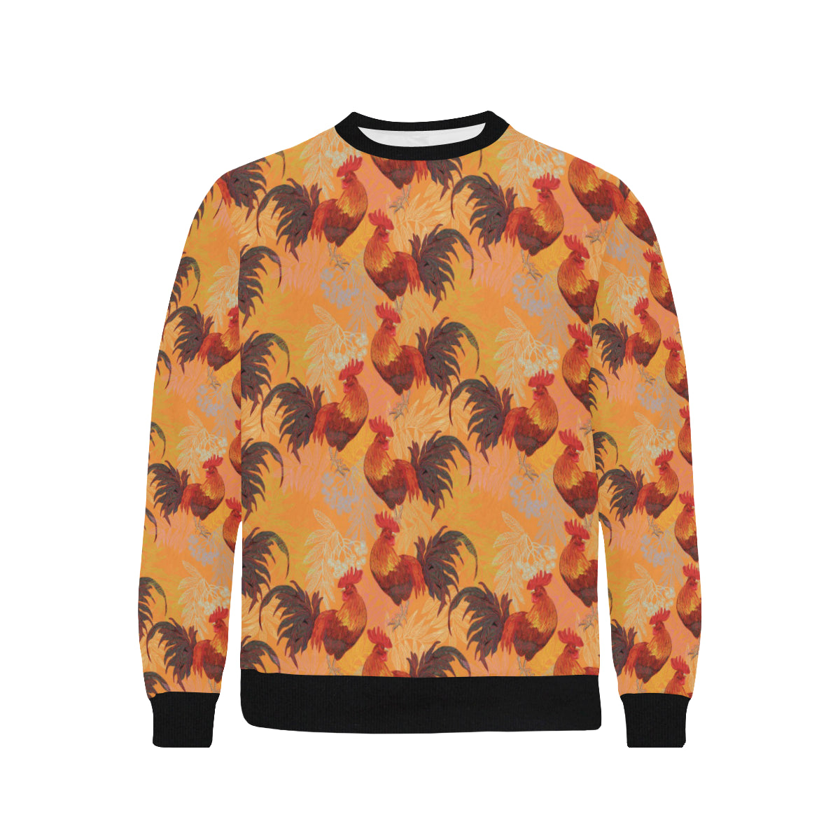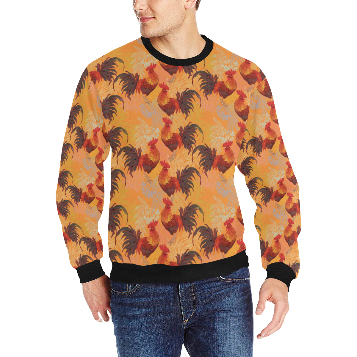 red rooster chicken cock pattern Men's Crew Neck Sweatshirt