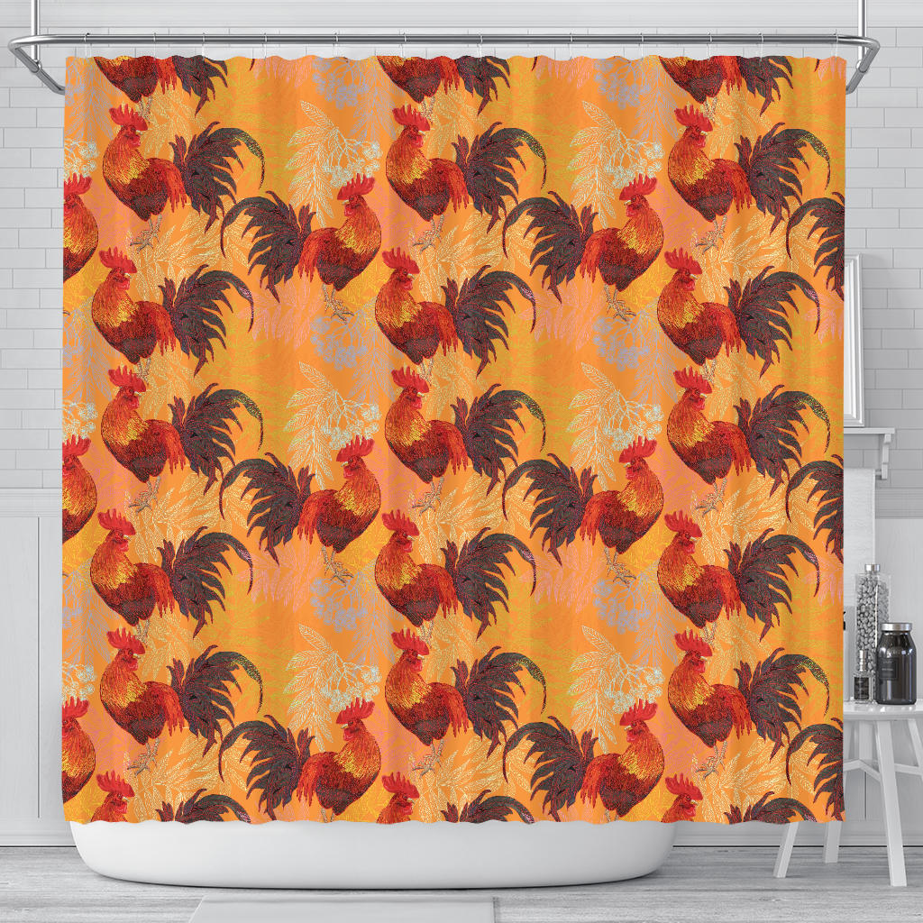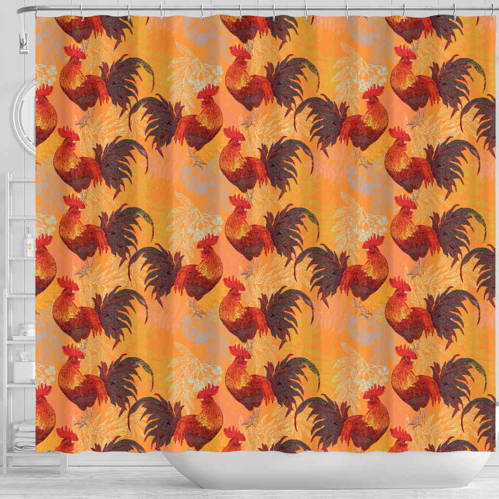Red Rooster Chicken Cock Pattern Shower Curtain Fulfilled In US