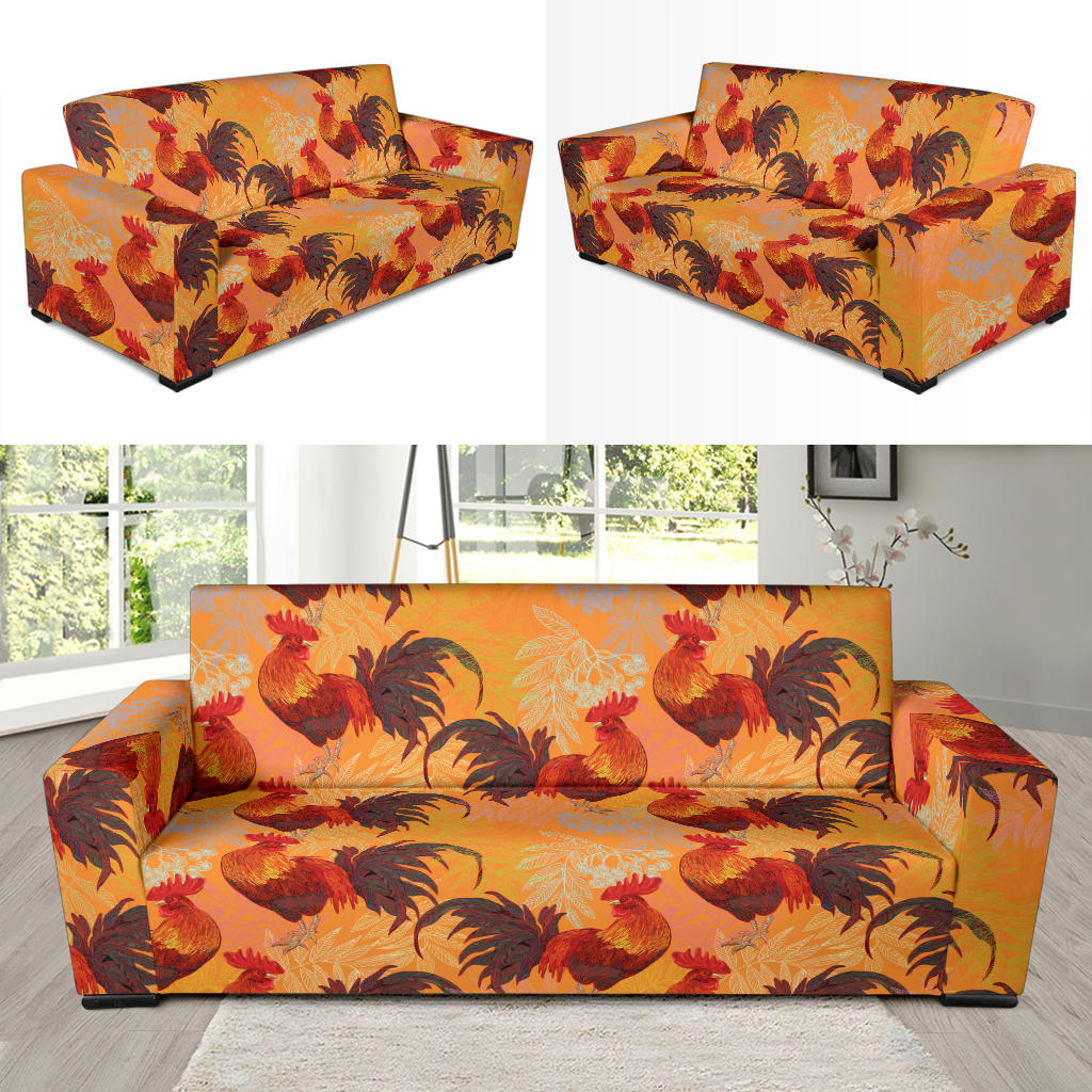 Red Rooster Chicken Cock Pattern Sofa Slipcover