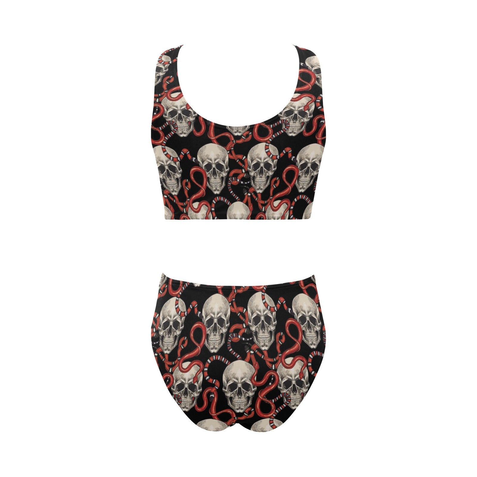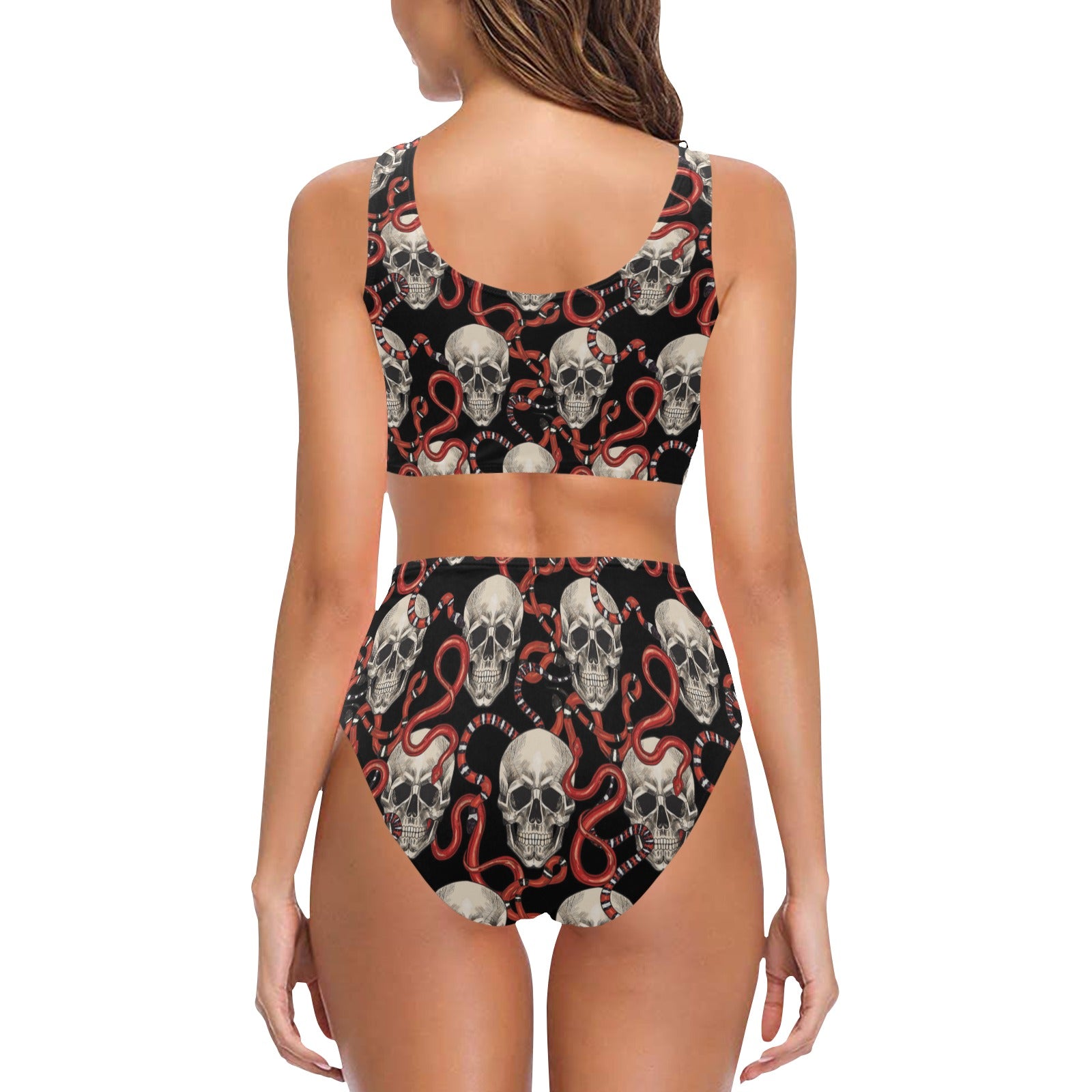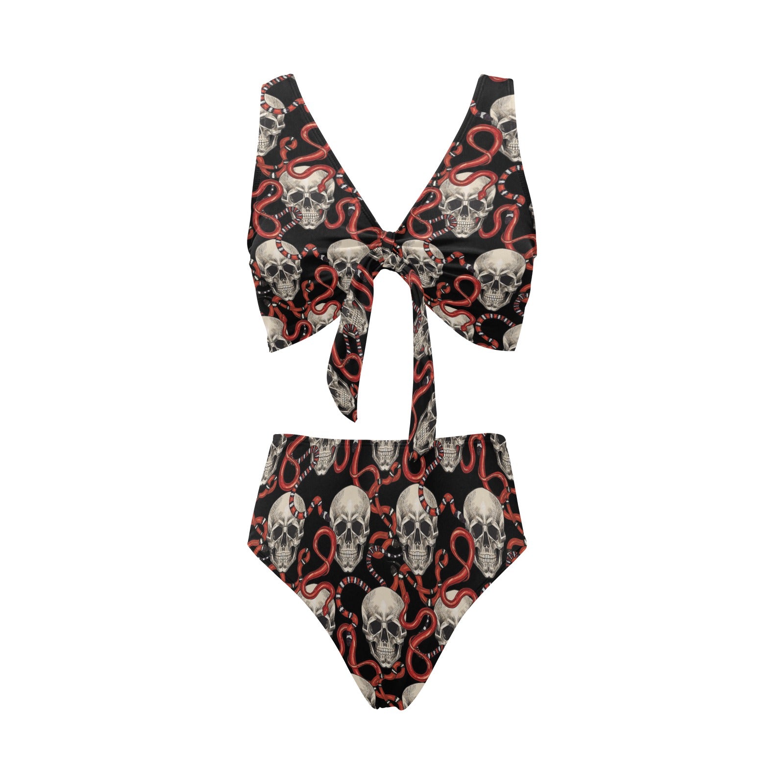 Red snake skull pattern Chest Bowknot High Waisted Bikini Swimsuit