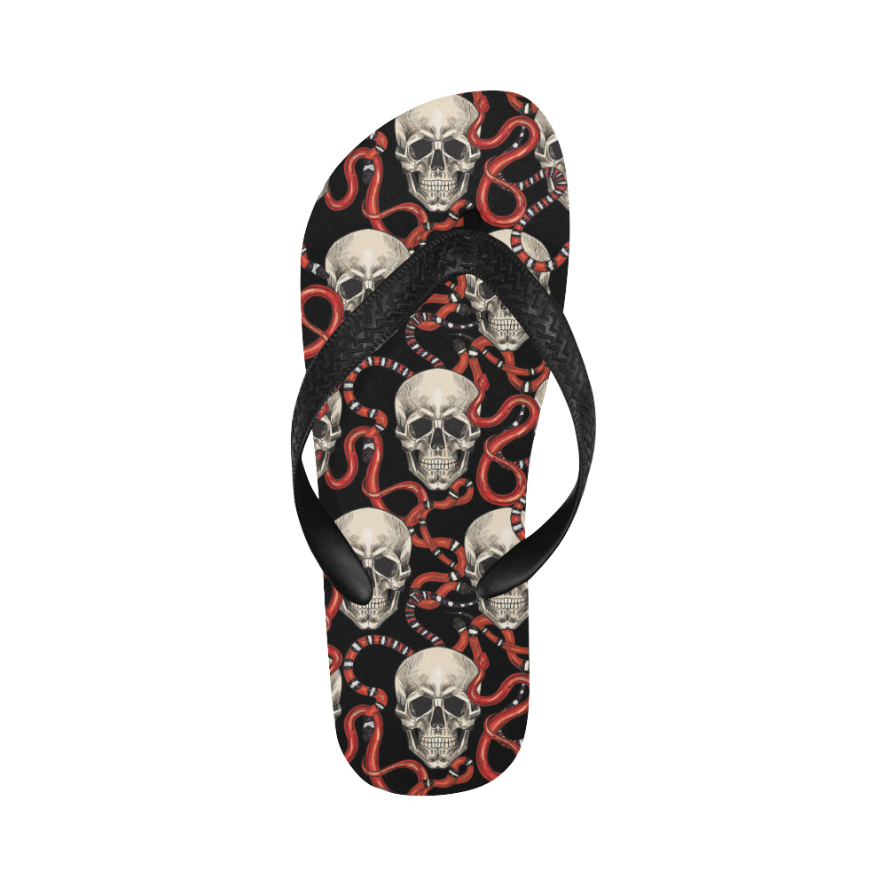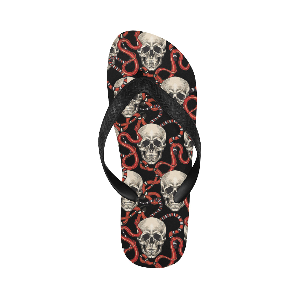 Red snake skull pattern Unisex Flip Flops is a uniqued design and limited item. It made to order, hand printed, and sewn with love in our factory.