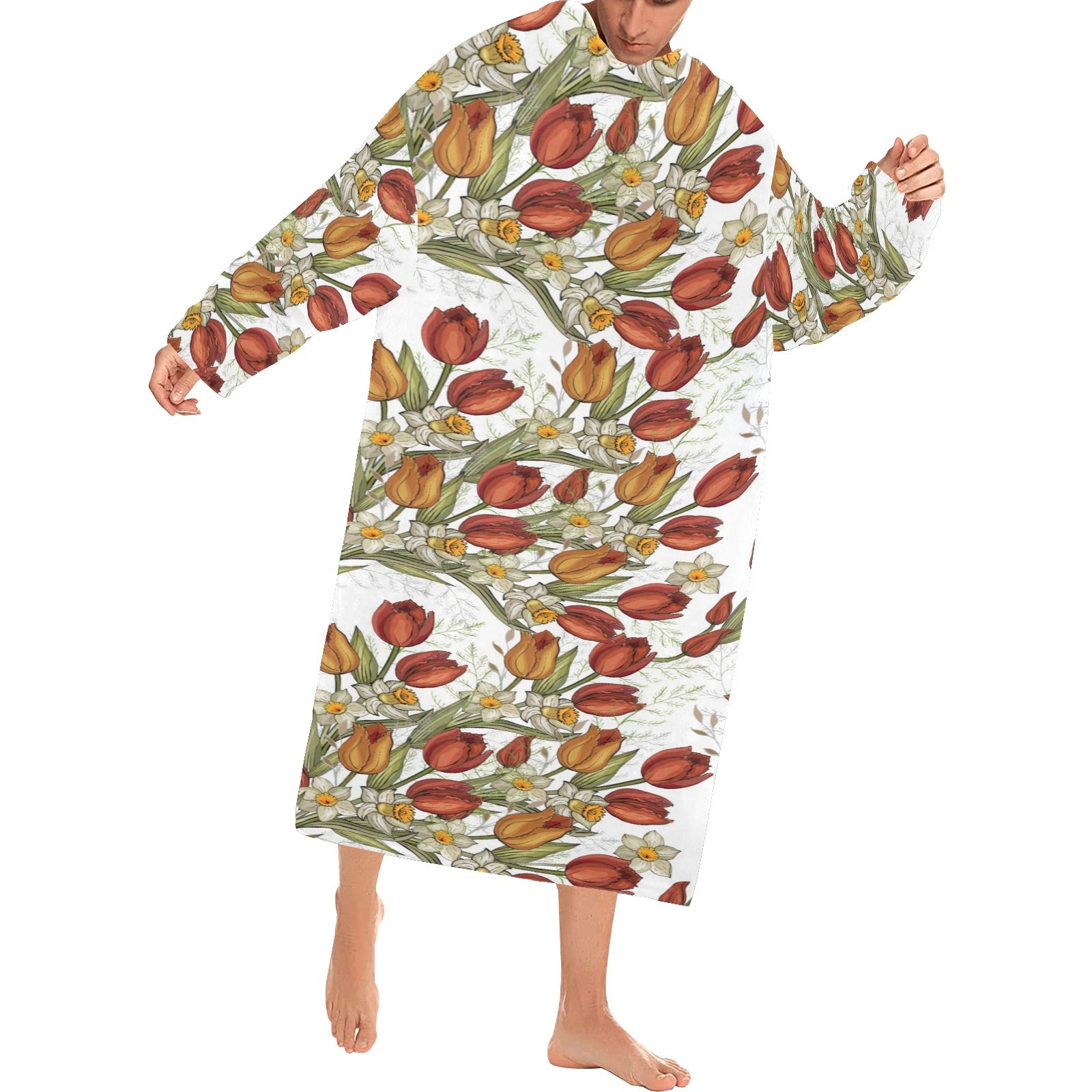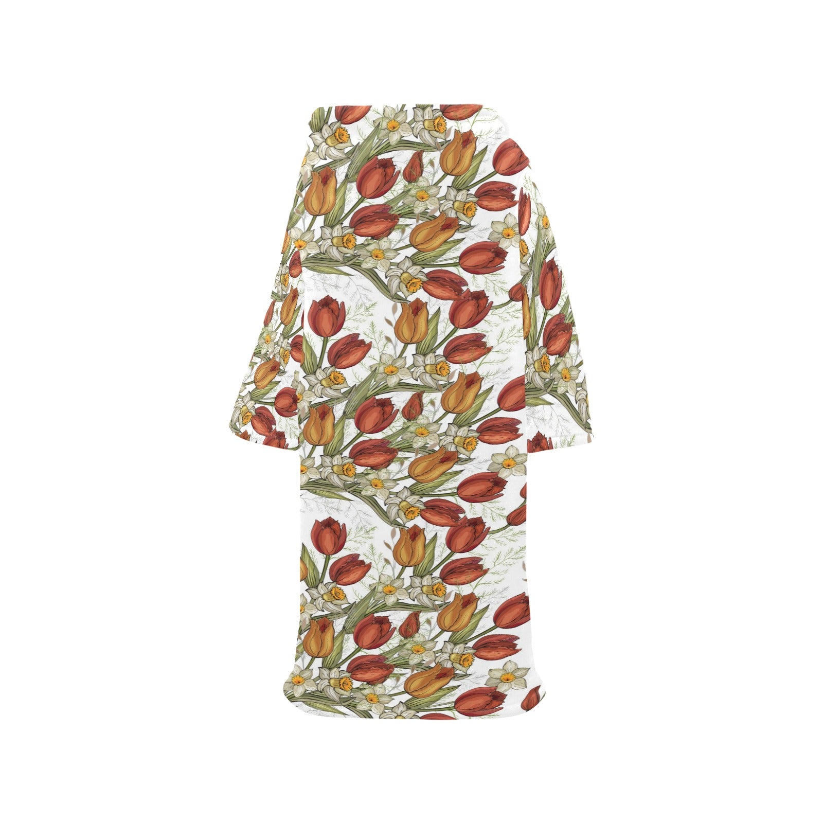 Red tulips and daffodils pattern Blanket Robe with Sleeves
