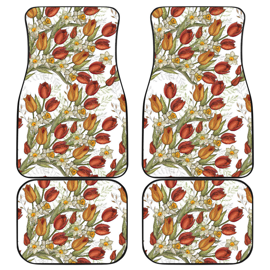 Red Tulips And Daffodils Pattern Front And Back Car Mats