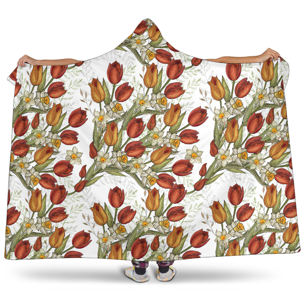 Red tulips and daffodils pattern Hooded Blanket are custom-made-to-order and handcrafted to the highest quality standards.
