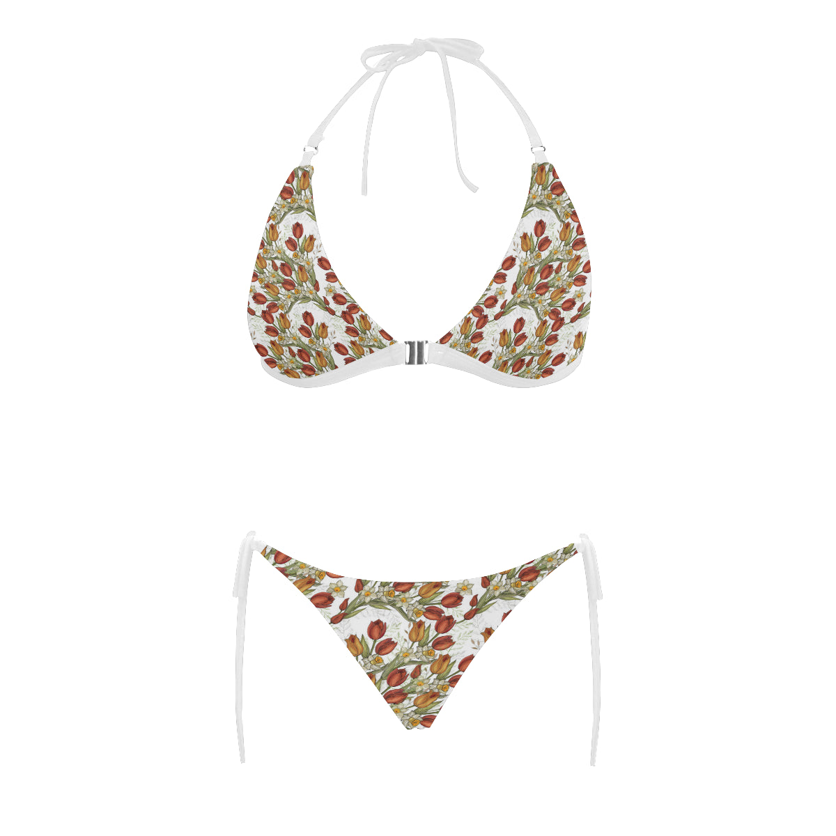 Red tulips and daffodils pattern Sexy Bikinis Two-Piece Swimsuits are uniqued design and limited item. It made to order, hand printed, and sewn with love in our factory.